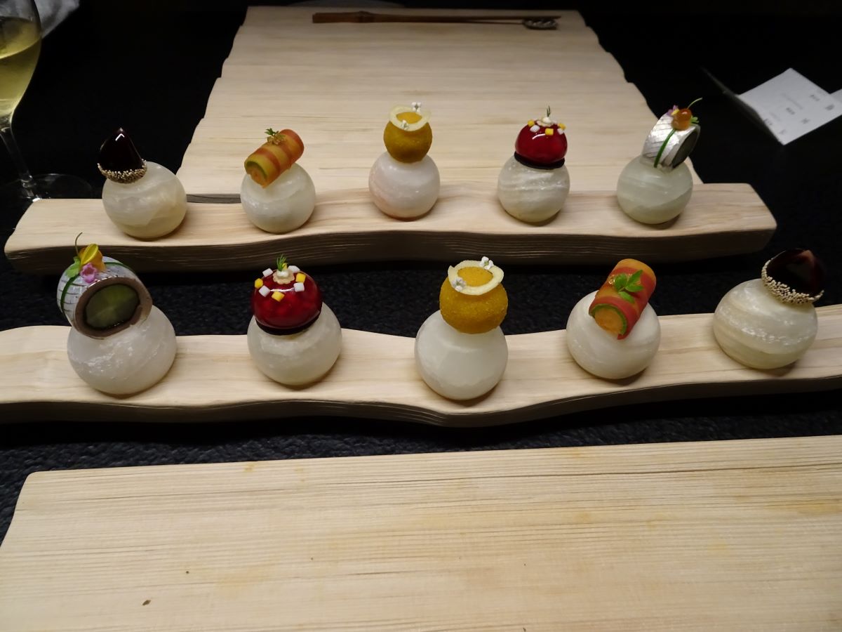 五つの意思、という名前の料理が、五つの「石」の上に乗っている。左から順に、酸味、塩味、苦味、辛味、甘味の「五つの味」の表現だ。スタッフが流れるようにコメントを添える。定番といえば定番だが、毎回内容が違うから、今日はどうくる?、と考えるとウキウキする。