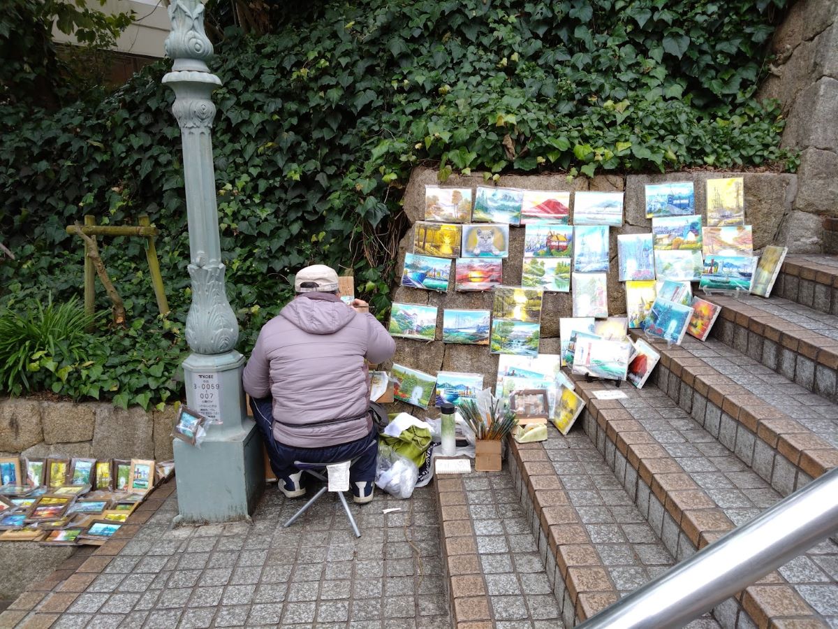 有名な「うろこの家」とか「風見鶏の館」などの建物は、一種の博物館だから入館するのもいいし、経験者なら入館せずに周囲でのんびりするのもいいかもしれない。ちなみに「うろこの家」の2階からは神戸の街が一望できる。異人館は、山の斜面に建っているから、狭い小路や、多少の登り坂もある。風見鶏の館からは、楽しい階段や坂道が続いていて、ショップを覗きながら降りると「北野坂」に出る。
