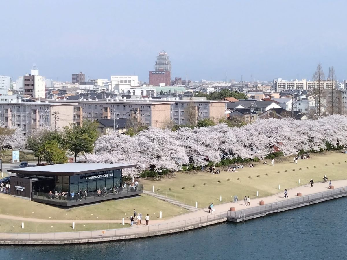 帰路はタクシーで富山駅の北側の環水公園に向かった。もしかすると、桜が観れるかも、と期待していたが、どうやらここはソメイヨシノばかりだからダメなようだ。僕は見頃の時期に立ち寄ったことがあるから、今日の写真には、こっそり見頃のそれを2枚忍ばせることにした。まぁ反則技だ笑。