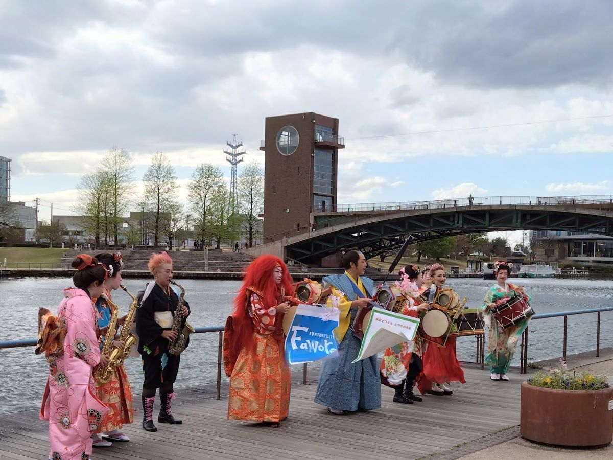 カラフルな一団とすれ違った。チンドンマンたちのパフォーマンスだった。あのレトロでどぎつい化粧のそれではなく、楽器も豊富で今風の大道芸人たちに見える。目と目が合うと、そこでパフォーマンスを披露してくれた。色のない公園に花が咲いてる感じだった。面白いなぁ。