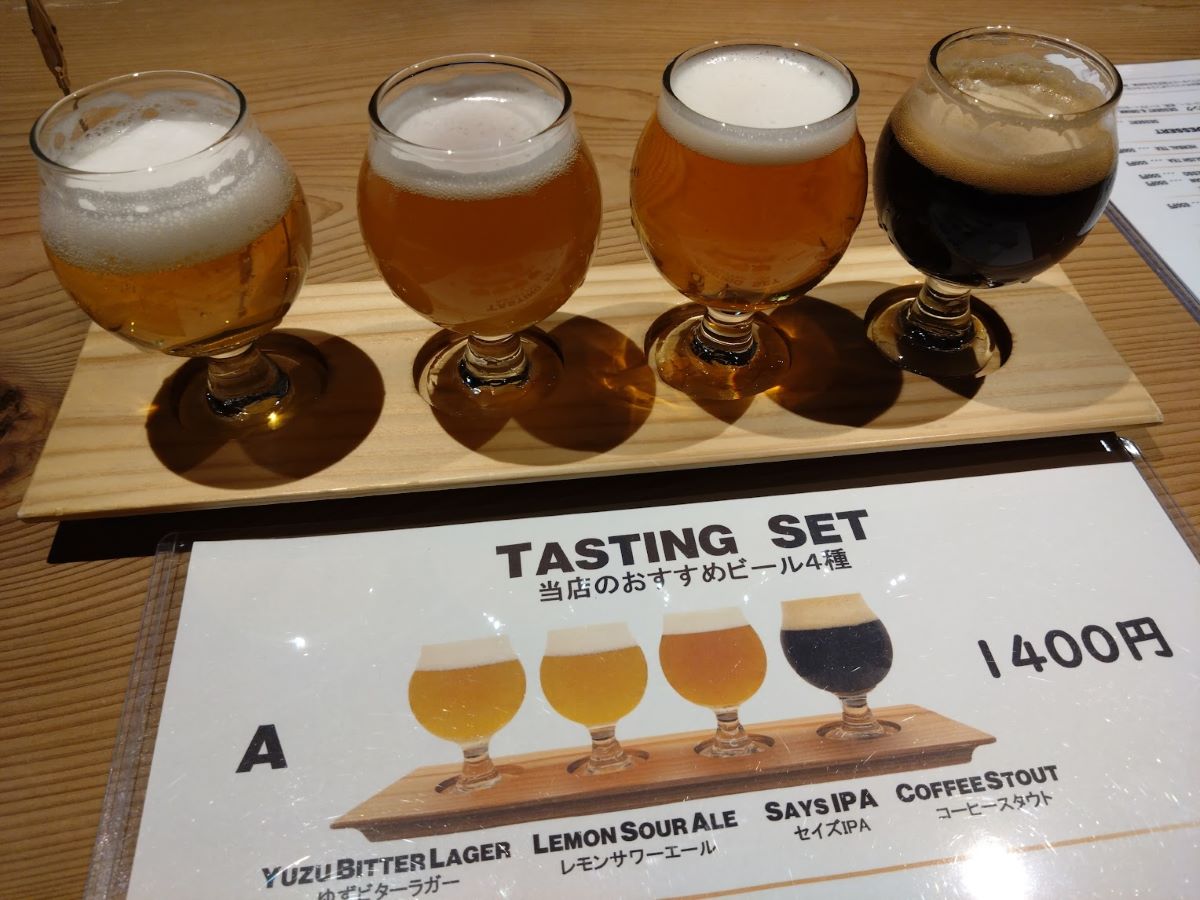 まず、クラフトビールのバーへ向かった。重要文化財級の廻船問屋(豪商)の古い屋敷を改装した、今っぽくてかっこいい店だった。ここはいわゆるブリューパブ、つまり醸造しながら出来立てのビールを飲ませる店だ。オーダーカウンターには、いわゆる「タップ」が並んでいて、8種類くらい?の好きなビールが注文できる。僕たちは飲み比べセットを選んだ。ビールそのものは、いわゆるSO-SOかな、でも楽しいのは間違いないし、仲間たちの話題で盛り上がった。