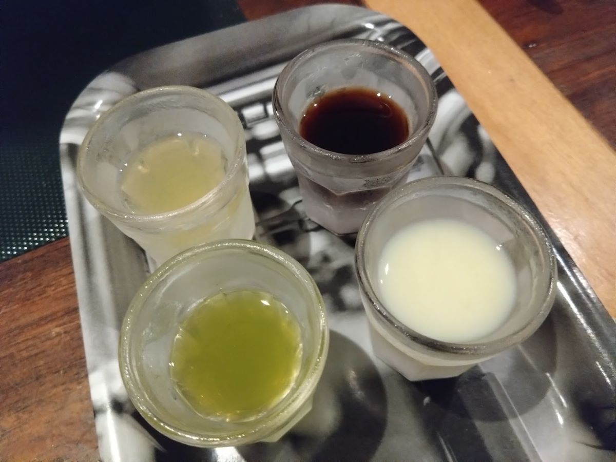 けっきょく、ここへきて僕はママに「何かできない?」と頼んでみることにした。少し考えた彼女がテーブルに運んでくれたのは、小さなショットグラスに並んだ4色の食後酒だった。最後の乾杯なのだが、こいつが強烈だった。味はリモンチェッロに似ているが、アルコールの度数が半端ない。花火は点いていないが、口の中(というか喉だな)に、火がついたような感じだった笑。これは記憶に残る1杯になる、ごちそうさまでした。