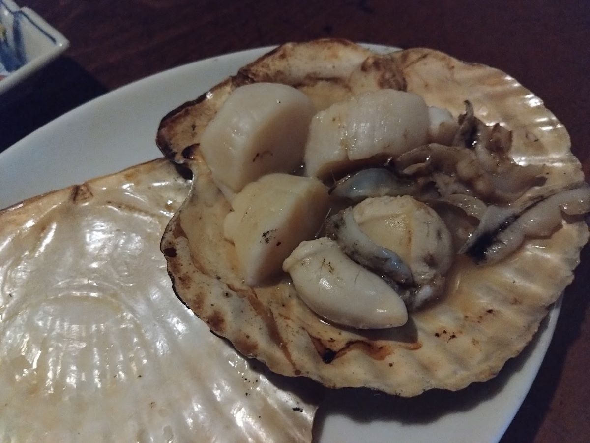 ニシンは昔と同じで感動した。帆立は大振りで味が濃く、その香りが違う。牡蠣は燻製されたやつを軽くあぶってある。そういえば炉の上には、開いた魚が干してあって、そこに牡蠣も吊ってある。焼きおにぎりはふっくら握り、ゆっくり焼く。中のおかか醤油がいい仕事をしていて、信じられないほど旨かった笑。