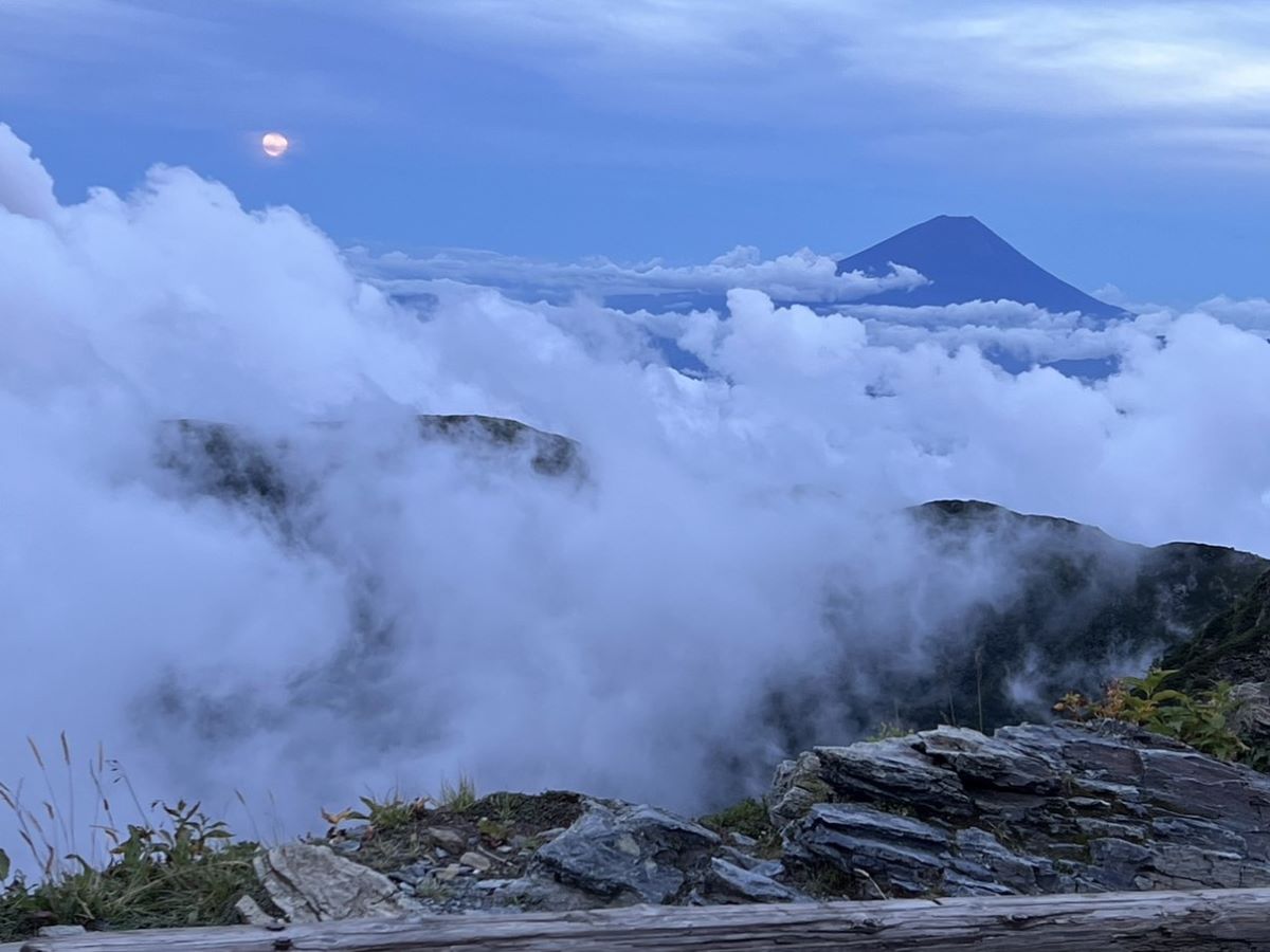 これで8月も終わりかなぁ、と思っていたら、最後はS本さんから、北岳登頂の様子が投稿された。ここに上げたのは富士山がらみの2枚なのだが、僕たち同級生の8月(まぁ夏休みかな)を締めくくるのにふさわしい、とても印象的な写真だと思う。