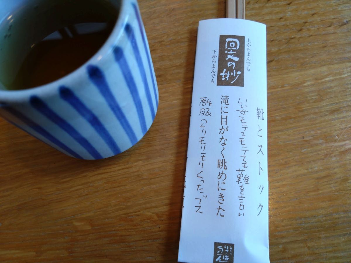 素朴で大衆的な「野路」にはたくさんのファンがいる。同級生の中にもそんな人がいてちょっと嬉しかった。野路の箸の包み紙に書いてある「回文」は覚えてる?、LINEには入れなかったけど加えておきます。懐かしいよね。