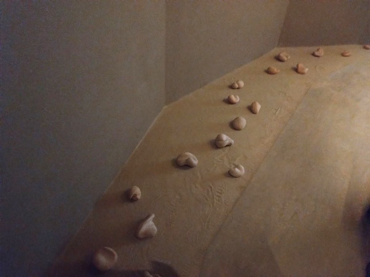 さて、ドライブは作品を探しながら進むことになる。もちろんカーナビにもGoogleにも作品場所は出てこない笑。頼りは出力しておいた作品の一覧表、そして簡単な地図と番号(作品番号)だけだ。でも、最初の2~3作品を回りながら要領がわかってきた。どうやら車道の脇に作品番号と矢印だけが書かれた「表示板」が立っているのだ。近くに駐車場の矢印もある笑。この表示板さえ見つければ、その作品が近くにある訳だ。