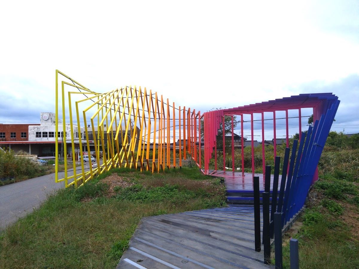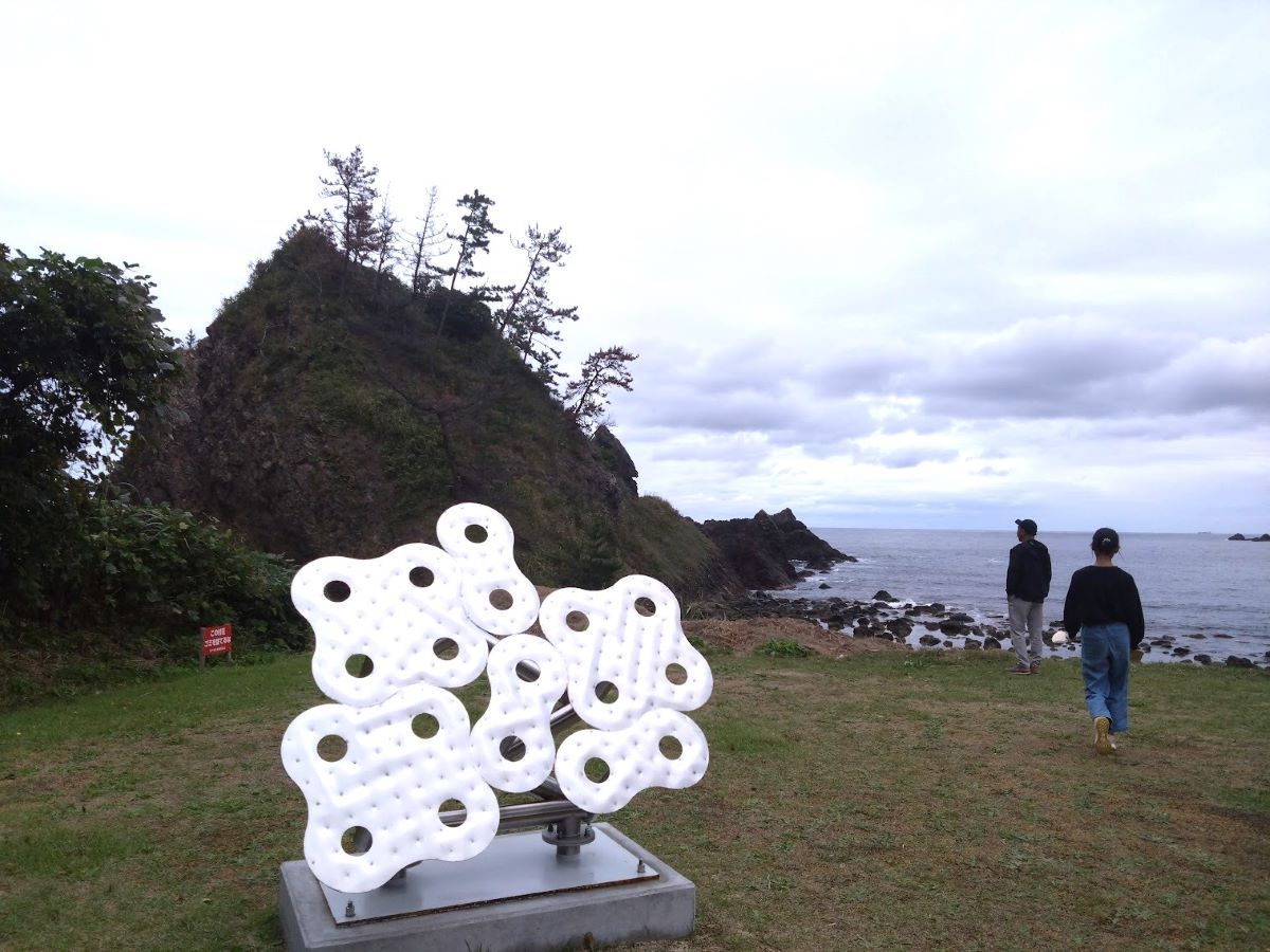 ここが、今日の僕たちのアートなラリーのゴールだ。僕たちとは逆のルート、つまり輪島方面から珠洲へのアクセスなら、ここが芸術祭の起点ということになる。古い小学校の体育館をアート空間として改造したらしい。隣接するカフェも楽しくて、芸術祭のラストを飾るにふさわしい場所だと思う。