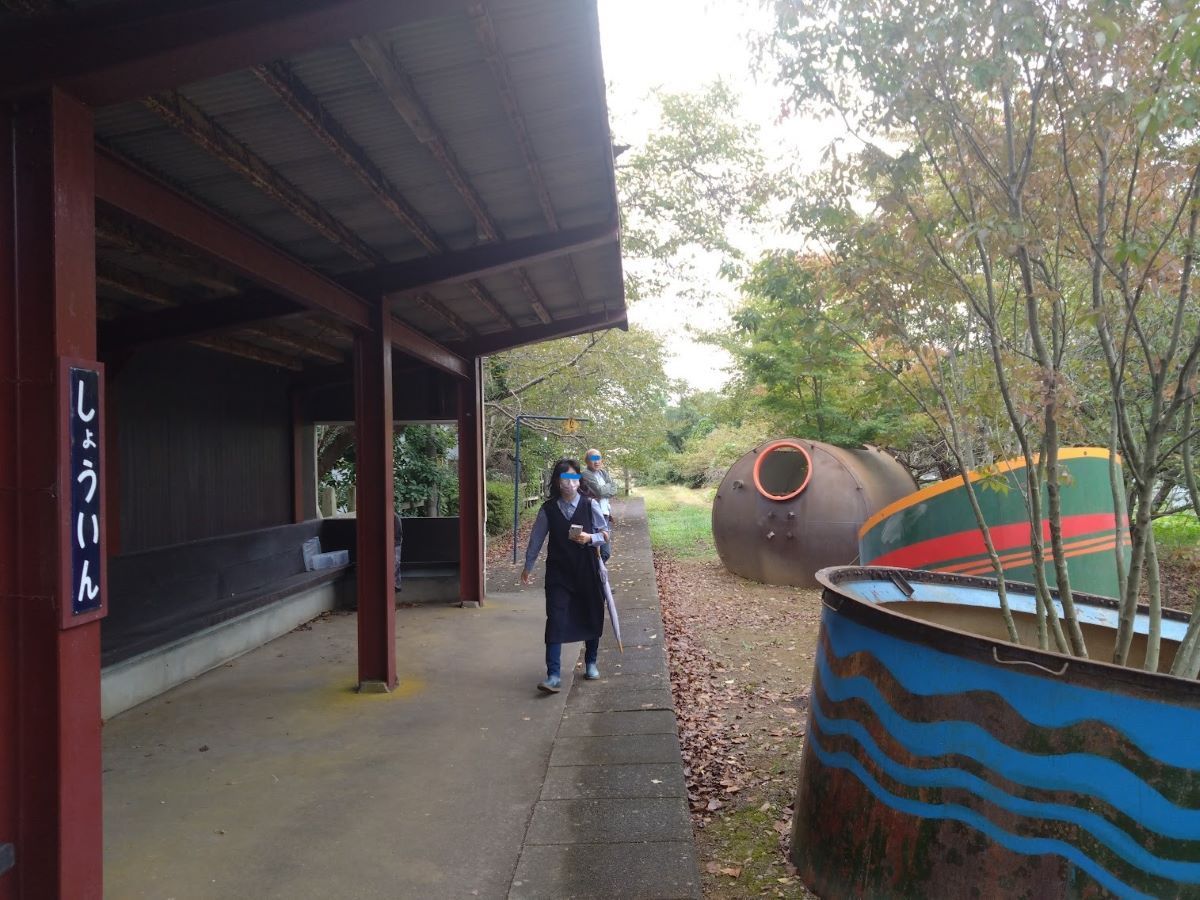バラバラに展示されている作品に共通するのは「その場所」が大事だということだ。廃線や廃駅、古びた廃校や民家の蔵やバス停まで多彩にある。まぁインスタレーション・アートというやつだ。