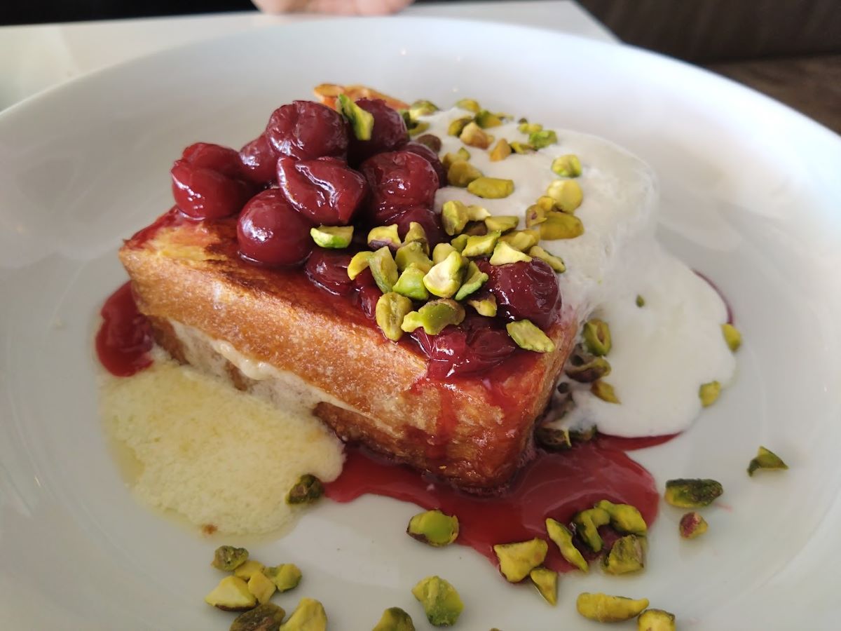 フレンチトーストは、スタンダードな角切りパンを使うタイプなのだが、軟弱なスイーツではなく、これぞ卵料理だ、と思うほど旨い。ベリーソースとヨーグルトがさわやかでピスタチオがいいアクセントだ。とにかく美味しい。
