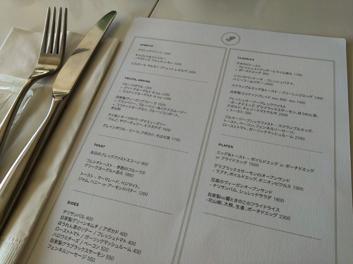一緒に外で待っていたのはペット(犬2匹)を連れた若いマダムだった。スタッフは、クローズされていた外のテラス席をテキパキ整えて、犬と一緒に案内してくれる。室内のテーブルも悪くないのだが、あのテラス席に座りたくなった。たぶん風が気持ちいいと思う。銀座のビルズも良かったが、この店は別格かもしれない。