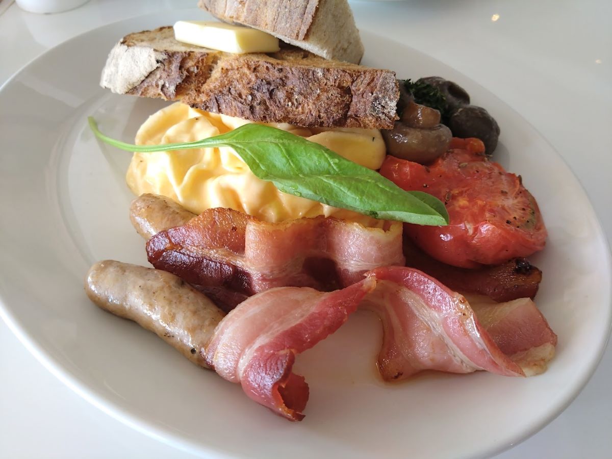 ここのスクランブルエッグは、よくある「ふわふわ」って感じではない。意外にしっかりしていて、でもトロリとした食べ応えがある。テーブルの塩と胡椒を好みで使うのだが、付け合わせのグリルトマトと一緒に食べると美味しいことを発見した笑。