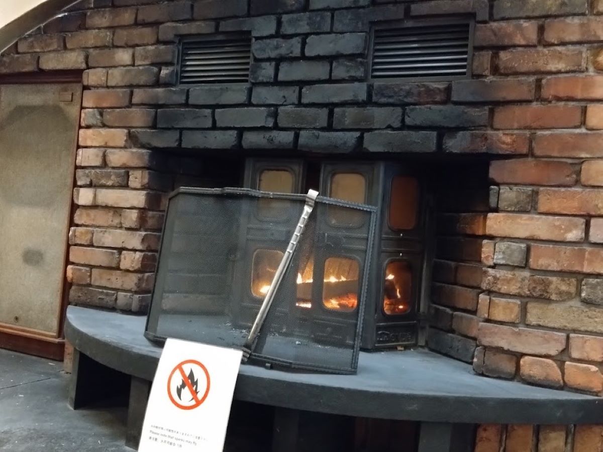 一番奥の方に、お気に入りの和カフェ(ちもと)があるのだが、今日はここにも列が付いていて、引き返すしかなかった。その途中、焼きたてのパンの香りに誘われて浅野屋(ベーカリー)に入った。奥に座るスペースがあるのだが、そこに年季の入った暖炉があった(まぁ古い薪ストーブだけど)。