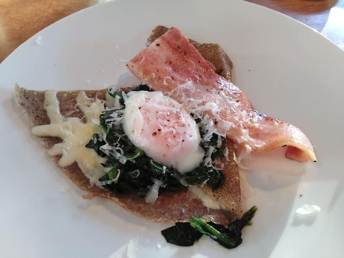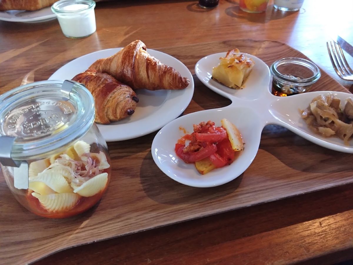 焼きたてのガレットが出てくるまで、充実したサラダバーやベーカーリーを楽しむ。地元の牛乳が置いてあったりするのも意外に嬉しい。何年ぶりかなぁ、味などは忘れてしまっていたが、出てきたガレットは、やっぱり旨かった。食べた老夫婦は色んなことを思い出して雄弁になる笑。