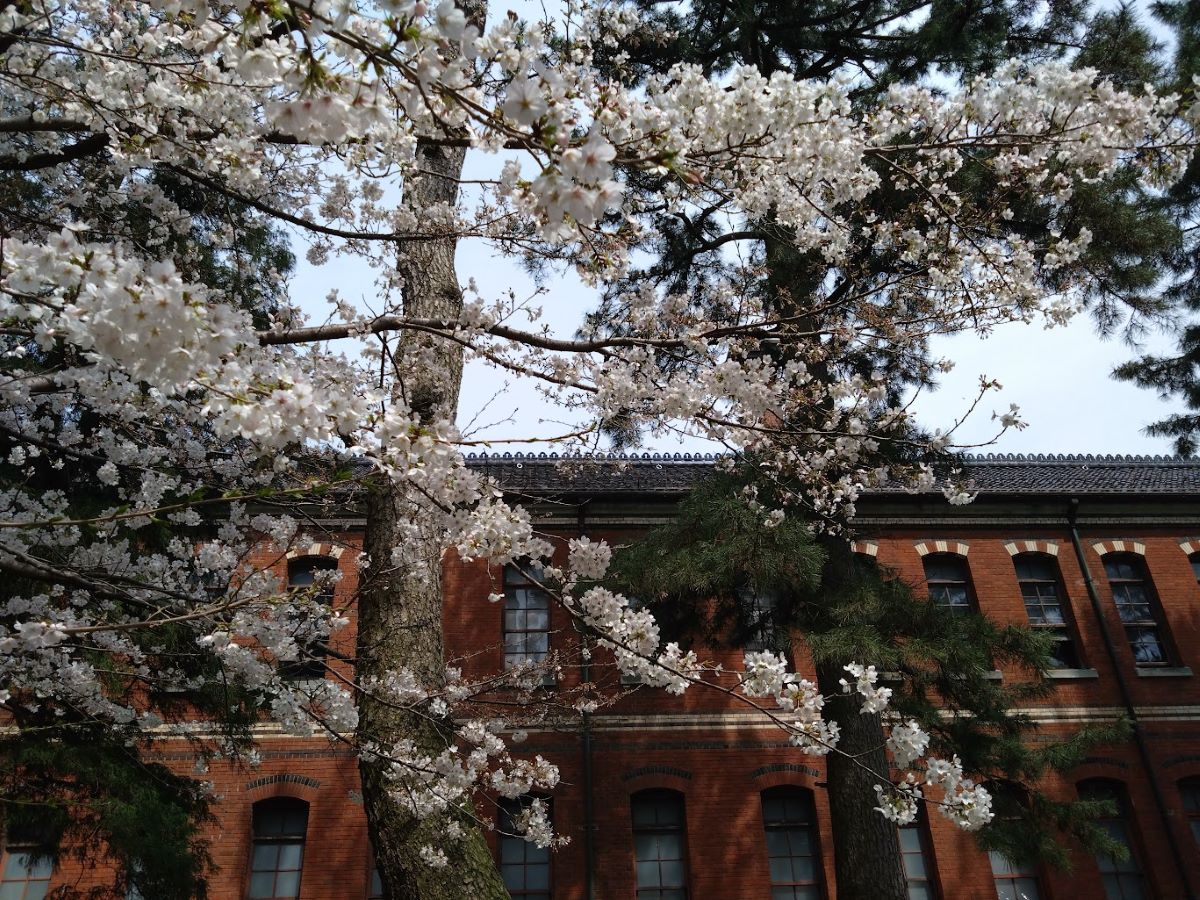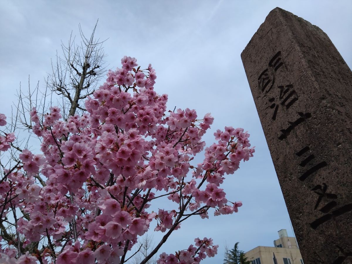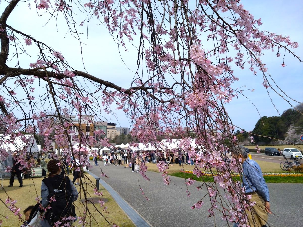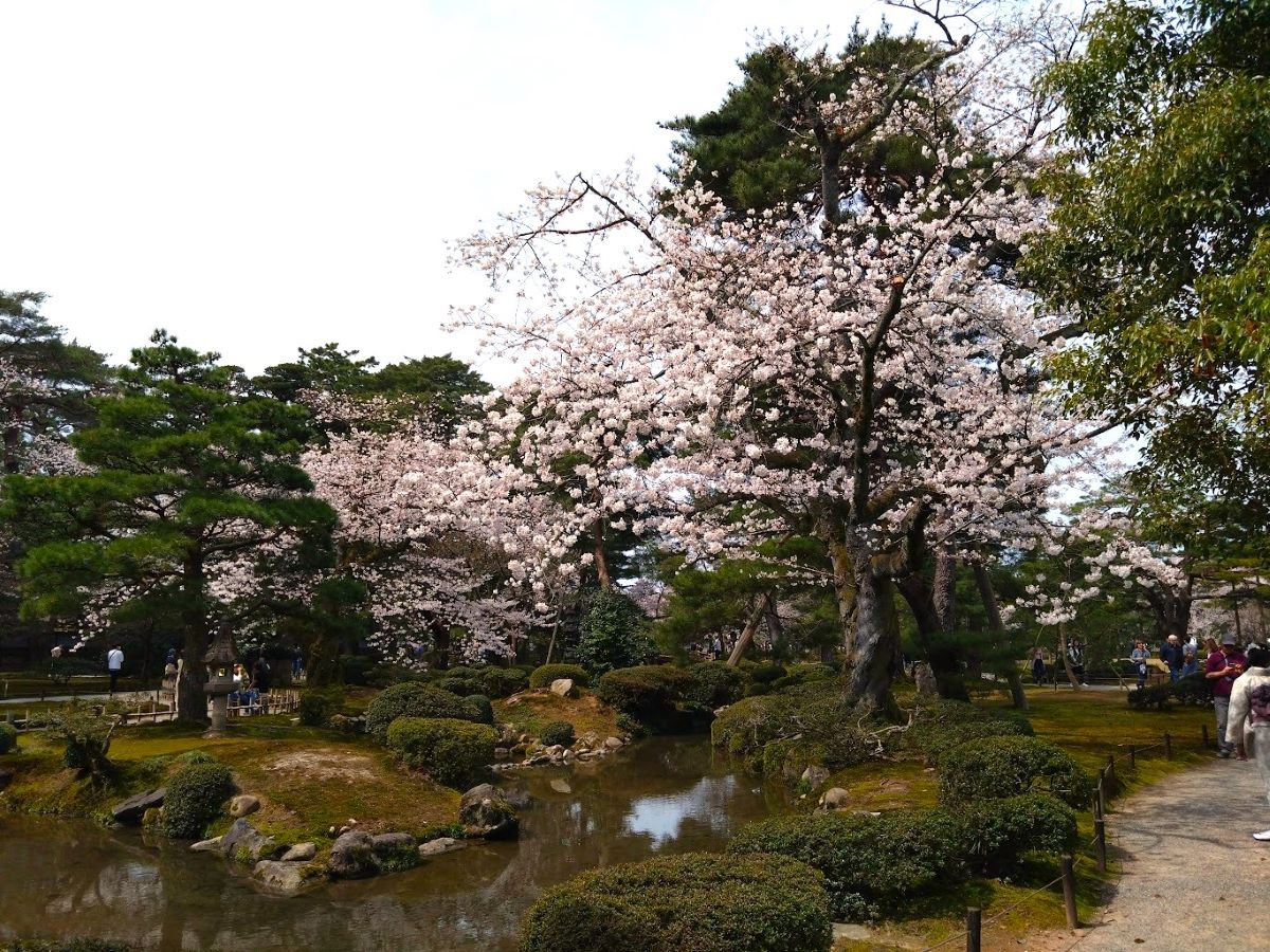 歩く道すがらに桜を見つけると、右へ左へとフラフラ小路を曲がって、満開の桜を順に追いかけた。まず見つけたのは21世紀美術館の外の緑地の桜だ。そして石浦神社、しいのき緑地、沈床園(石川門の下)、裁判所、そして最後に兼六園へと歩いた。書いてみると、おかしなルートだったかな笑。