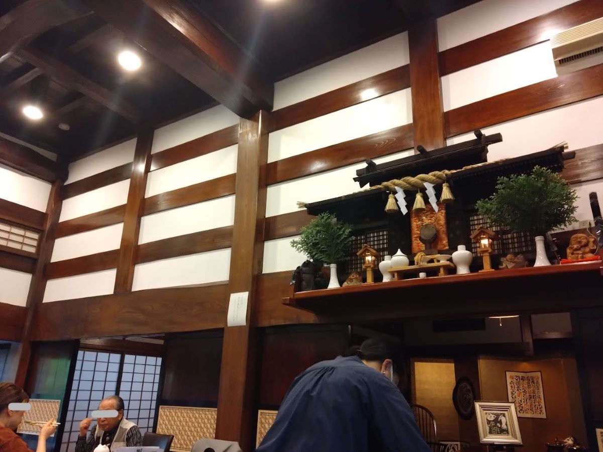 立派な古民家だ。豪農とか庄屋とかのお屋敷みたいな建物で、前庭も美しいし部屋の調度品なんかも凝っている。待つこと40分、ようやく席へ案内された。蕎麦は細挽きと玄挽きの2種類、特徴は甘めのつけダレかな。イチ押しの鴨せいろや、天ぷらやだし巻きなども注文して、ワシワシ食べて満足した。