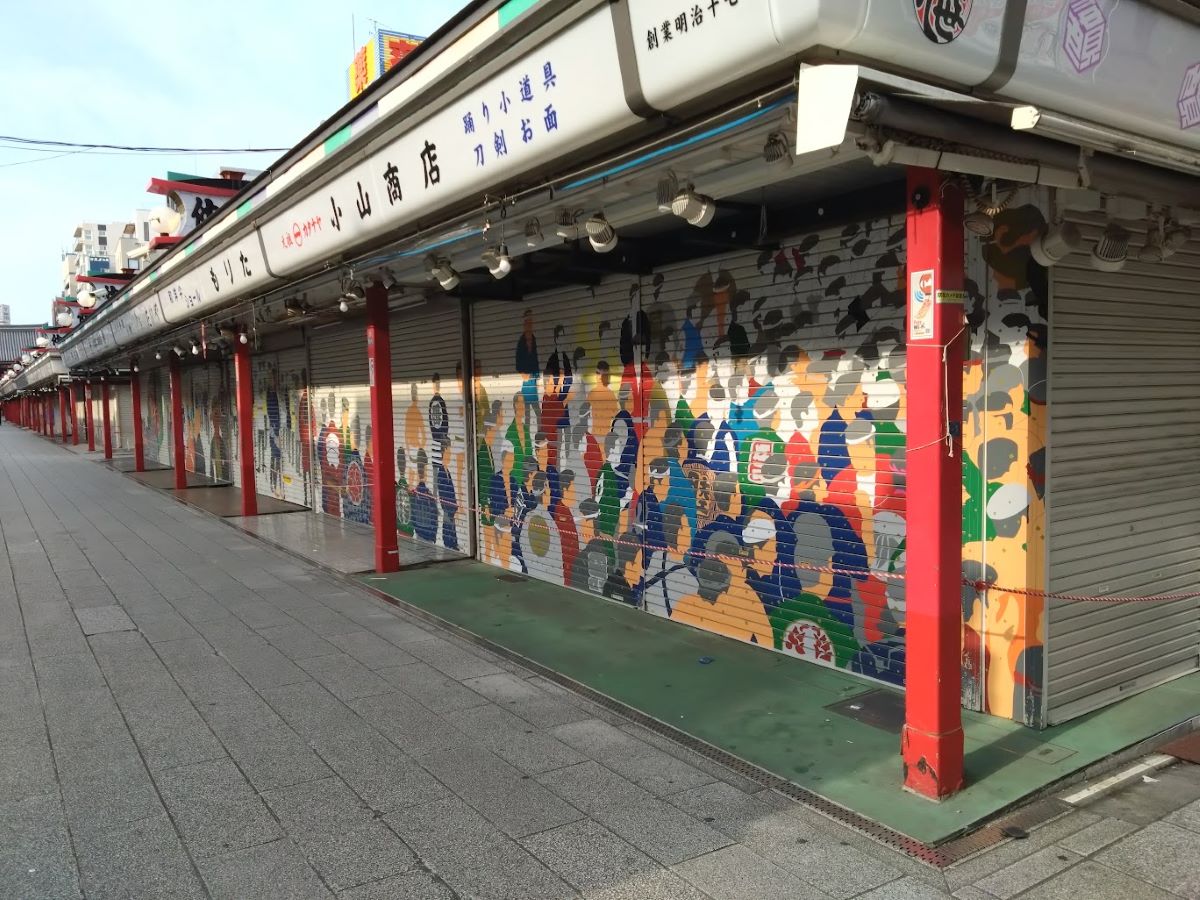 ちなみに早朝ツアーだから、あの仲見世はシャッターが降りている。でも両サイドのシャッターには、三社祭やほおずき市など浅草を代表する行事のイラストが克明に描かれていた。営業時刻前だから見れる景色もあるのだ。