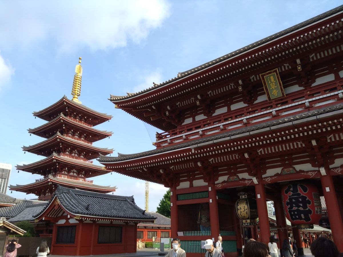 次は西境内にある影向堂(ようごうどう)とその境域だった。たぶん観光客は行かない一角だ。ここでも彼の解説トークは絶好調に冴えわたる笑。そして、宝蔵門(仁王門)、五重塔、仲見世通りと、それぞれのトリビア解説が進み、最後は雷門(風雷神門)でツアーが終了した。時間にして1時間ちょっとなのだが、とても価値ある時間だった。