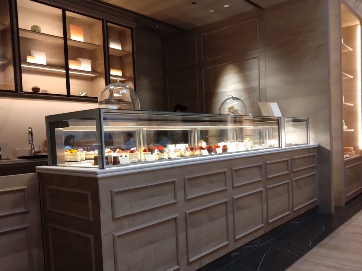 外のテラス席も気になったが、珈琲を飲みたいだけだという僕たちには、パティスリールームを薦めてくれた。要するにケーキ&カフェのスペースだ。とはいえ吹き抜けの天井の意匠がとても豪華なホールだった。