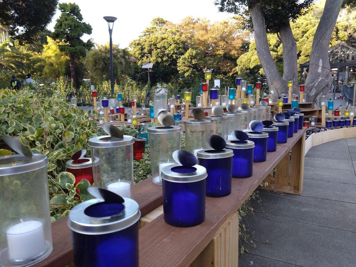 散策路にはたくさんのキャンドル(1万本らしい)が並んでいる。どうやら「湘南キャンドル2023」というイベントのさなかで、夜になるとこのキャンドルが一斉に灯って江の島全体が光で包まれるらしい。ちなみにこの日は、夜は有料、昼は無料だ笑。なるほど、ここにいる若い人たちは、このまま夜を迎えるつもりかもしれない。