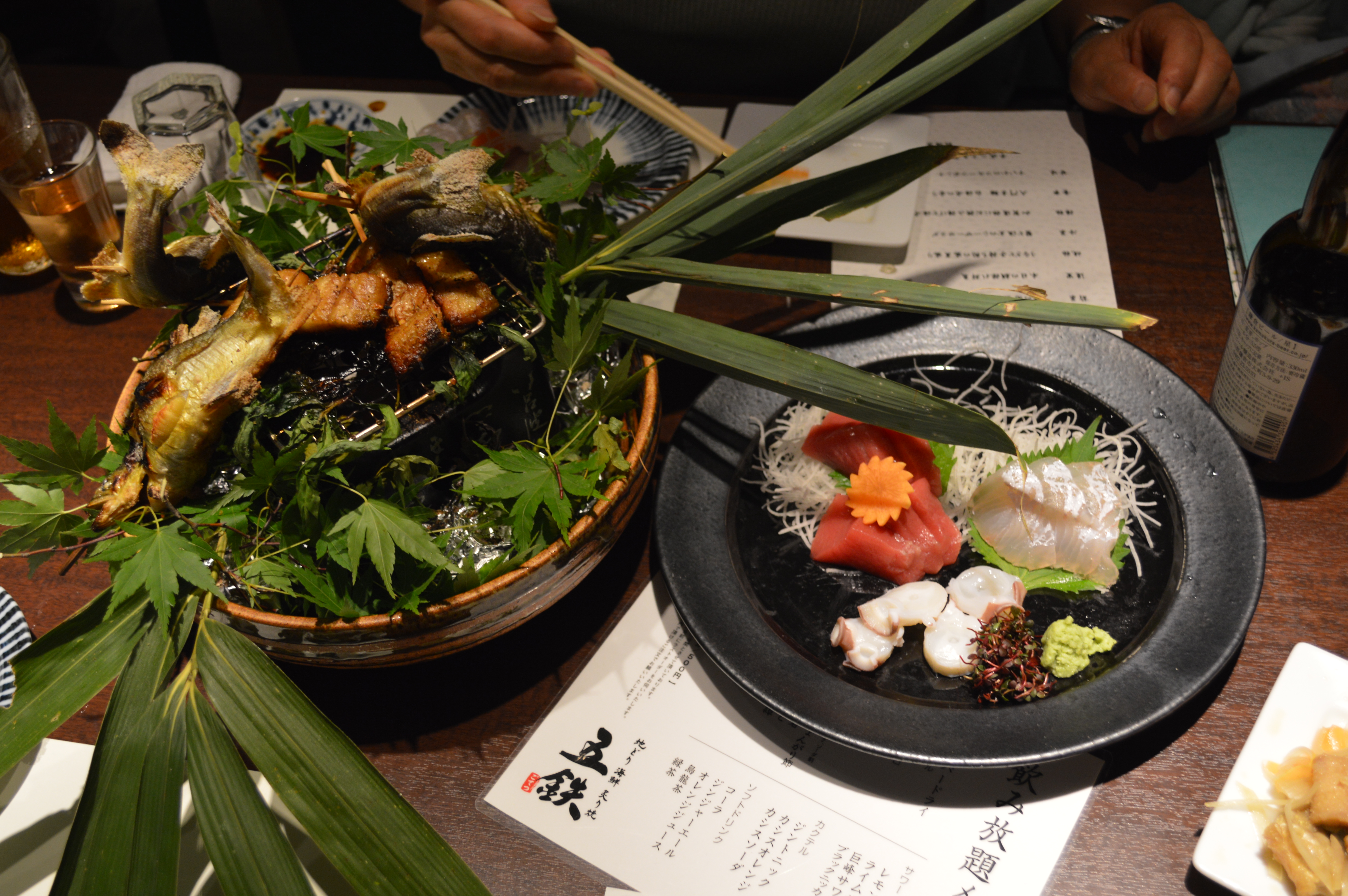写真順16 ◇新鮮なお造りと子持ちアユの塩焼きです。