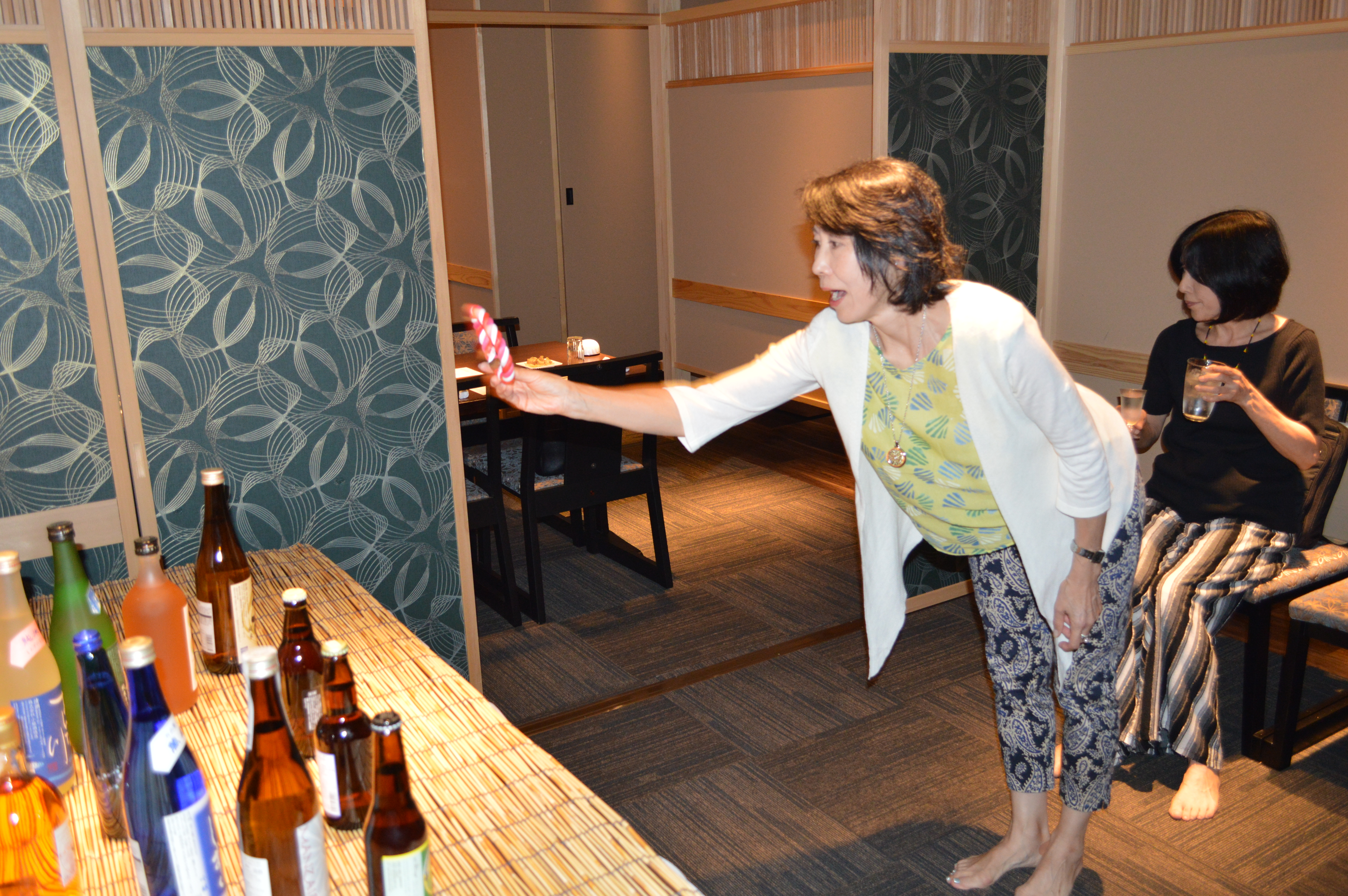 写真順 4 ◇開演までの余興のひとつ、輪投げ大会です。輪が入った酒をサービスで飲めました。帰りにはお持ち帰りもできました。