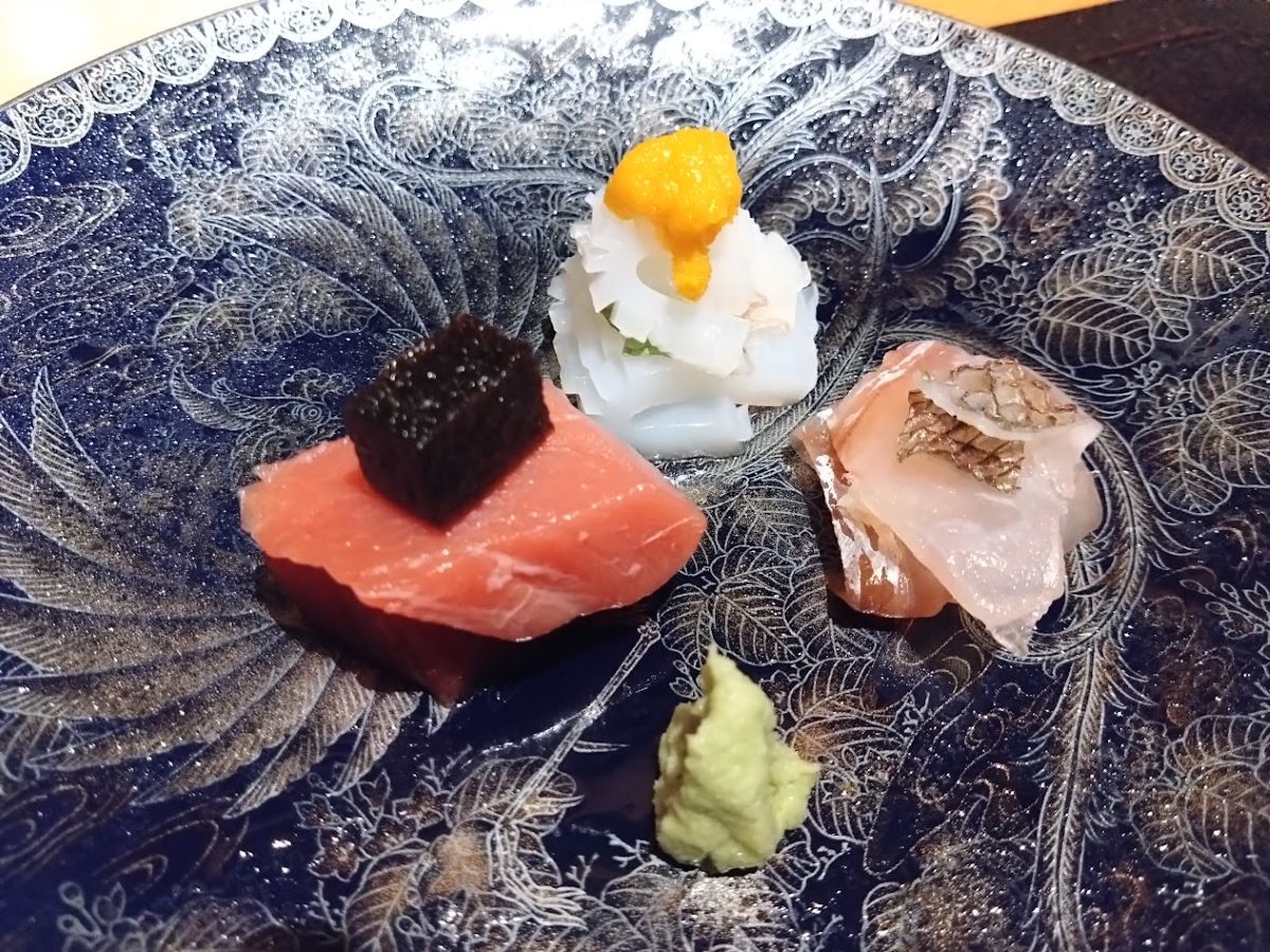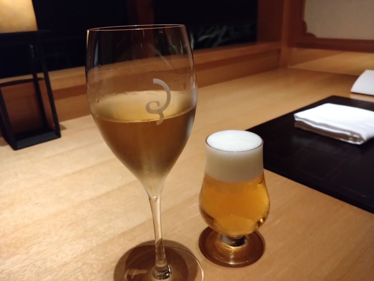 料理は、どれもアイデア豊かで、器も盛り付けも、味も秀逸だった。嬉しかったのはワインペアリング(コースに合わせた4グラス)が何種類も用意されていたことだ。今回は和食だから地酒がワングラスあるやつを選んだ。これで食事が一段と楽しくなった。