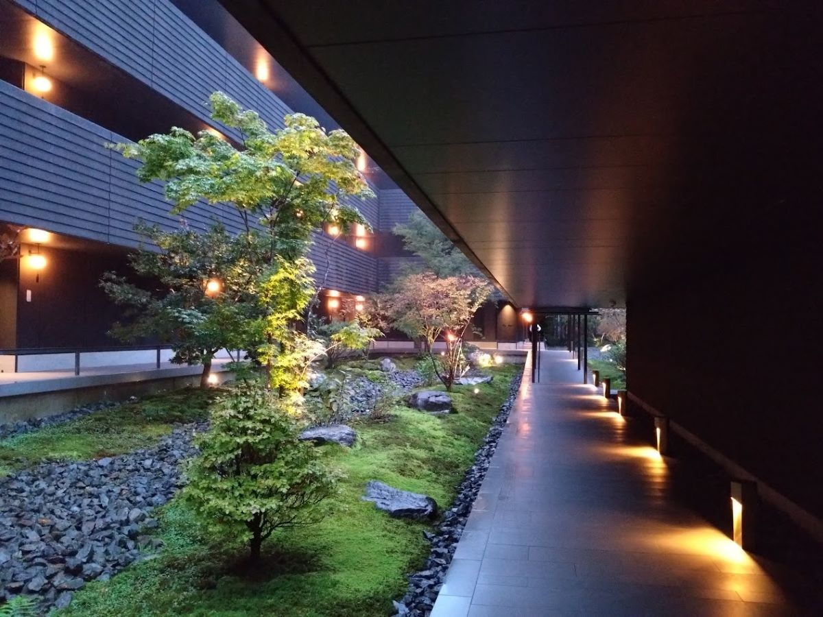 外観や建物は現代的ですっきりしている。まぁクールな感じだ。その一方で客室の内装はシックで、一部に大正ロマン的なデザインを施してあるそうだ。大正ロマン?と聞くと少し違和感があるのだが、そういえばこの敷地は元御用邸の跡地の一部で、主に利用していたのは大正天皇だったらしいから、そんなモチーフになったのかもしれないな。