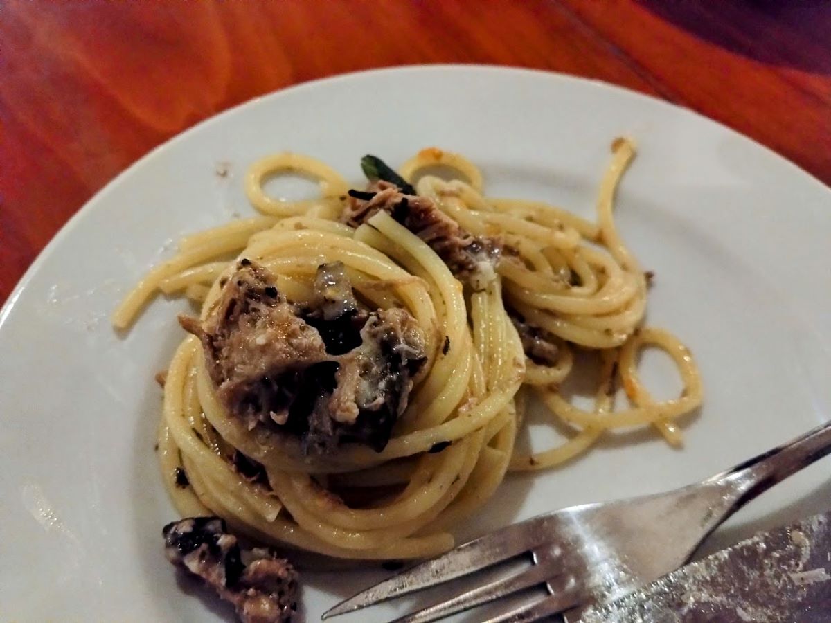 会場は鎌倉駅近くのガーデンハウス鎌倉というオールデーレストランだった。人気店だからか女性客ばかりでにぎやかだ。料理はフレンチの技法で仕上げるカジュアルなイタリアン、そんな感じだ。立派なサイズの舞茸のフリットとか、鴨のラグー(パスタ)とか、なかなか面白かった。