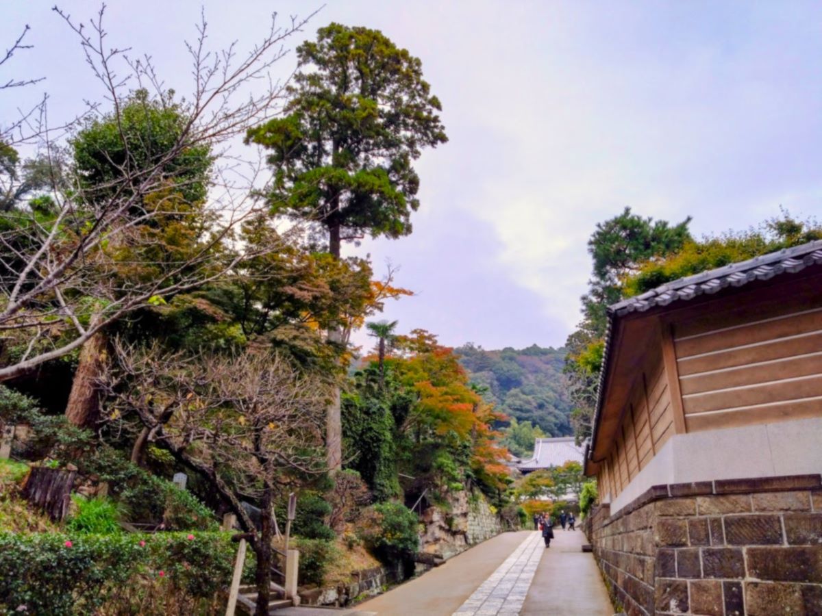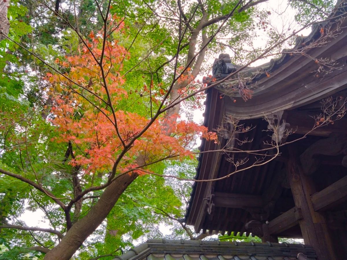ふと立ち寄った喫茶吉野のフルーツケーキは絶品だった。そんな休憩&充電を終えて、今度は建長寺へ向かった。ひと通りの見学を終えて、ここでも紅葉の景色を探してみることにした。古刹の景色には色が少ないから、紅葉は鮮やかな差し色ってことになる。少し早いのだが、まぁきれいなのだ。