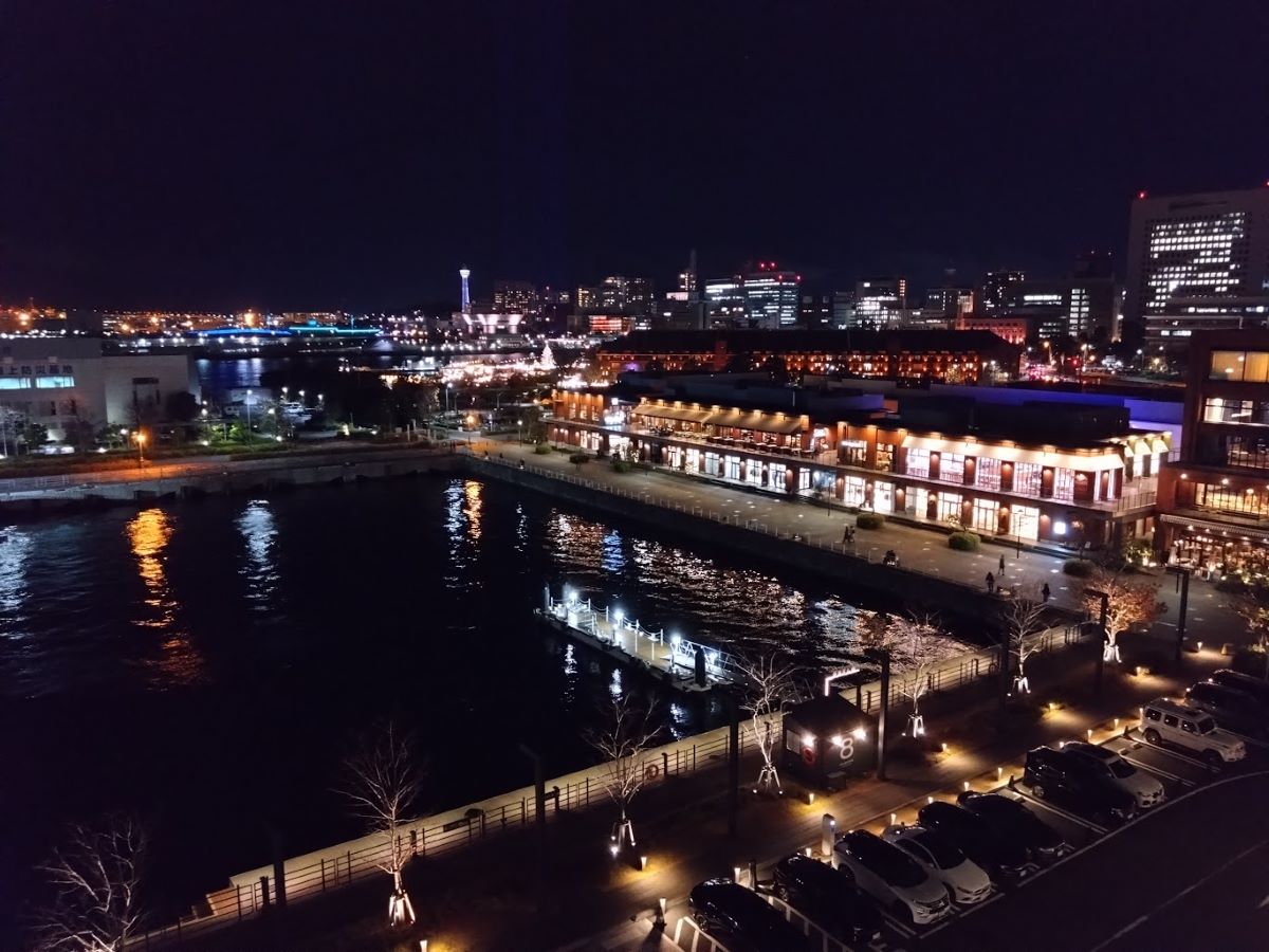 選んだのは港が見渡せる「ベイビュー」の部屋だった。真ん前に新港の景色が(すぐそこに)見下ろせる。シーバスの桟橋や、停泊中の海上保安庁巡視船、右手には赤レンガ倉庫へと続く遊歩道、そして遠くにはベイブリッジも見える。いい感じだ。