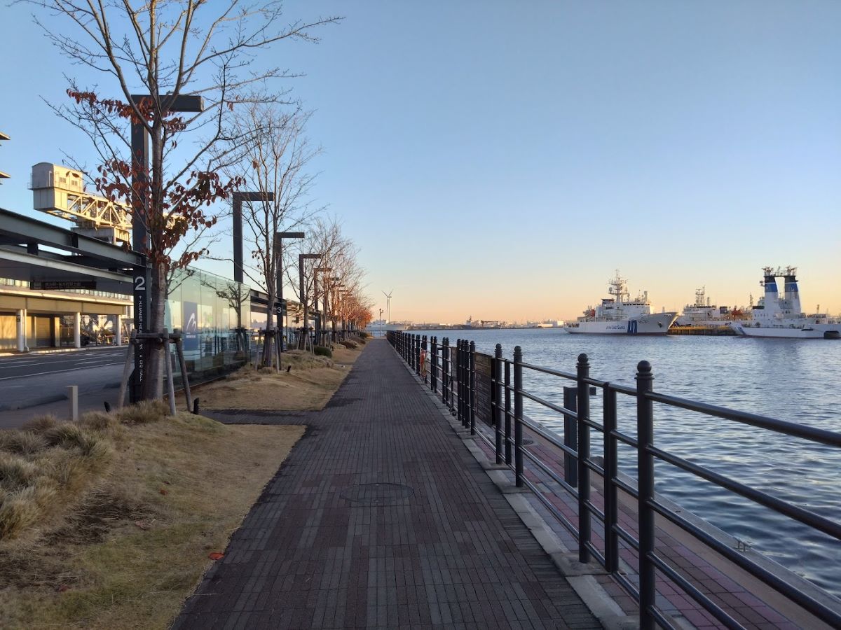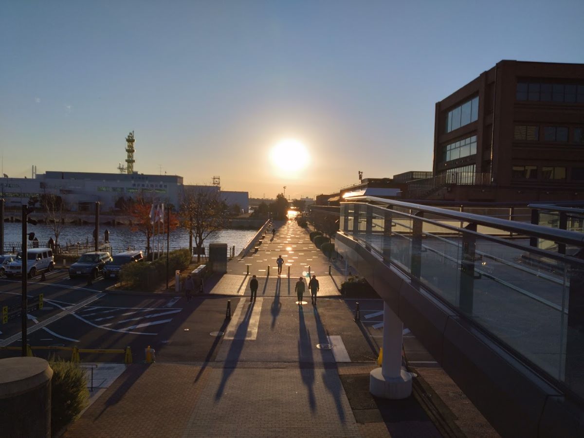 翌朝は、ちょうど陽が登る時刻に目が覚めた。カーテンを開けると、太陽は海上保安庁の基地の上に顔を出し始めた。北陸育ちの僕にとっては、海の朝日が見れるのはラッキーだ、さっそく朝の散歩に出かけることにした。