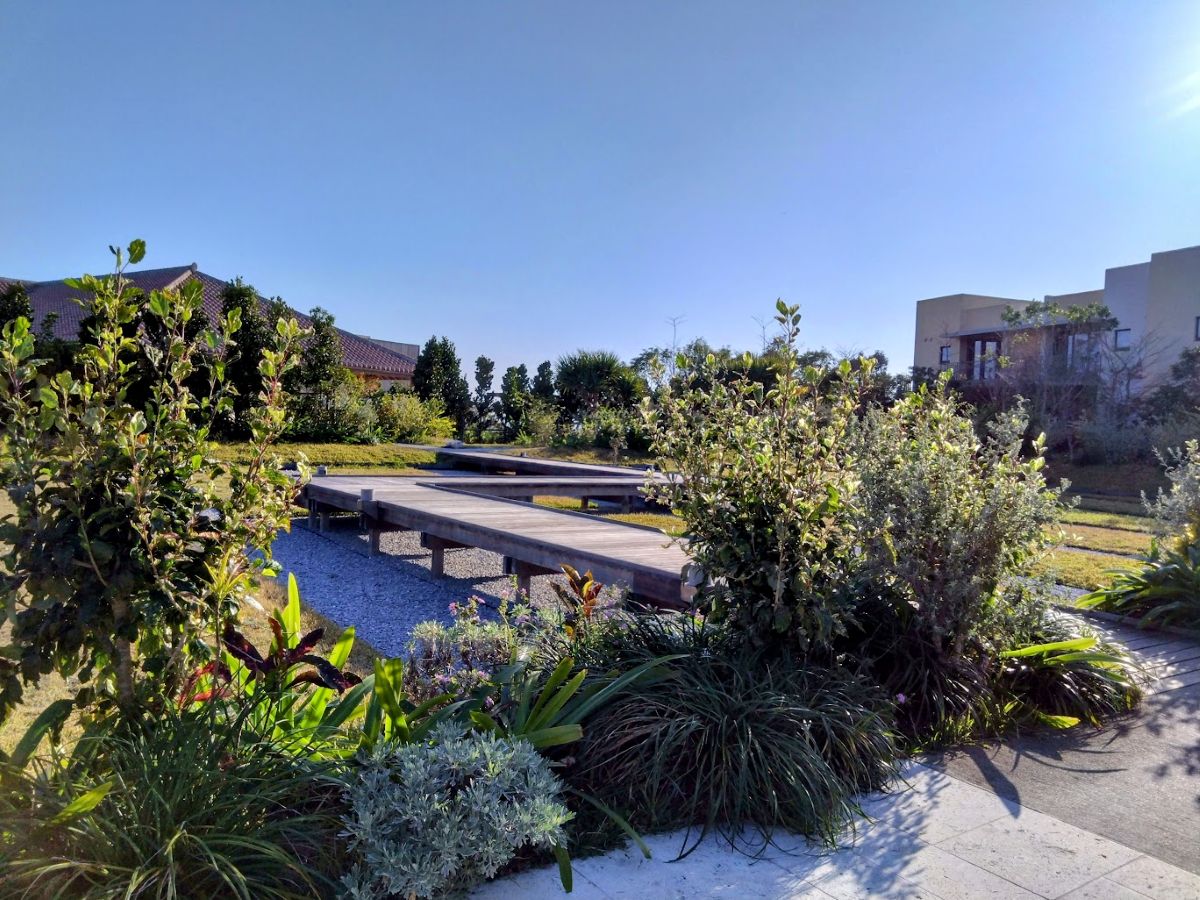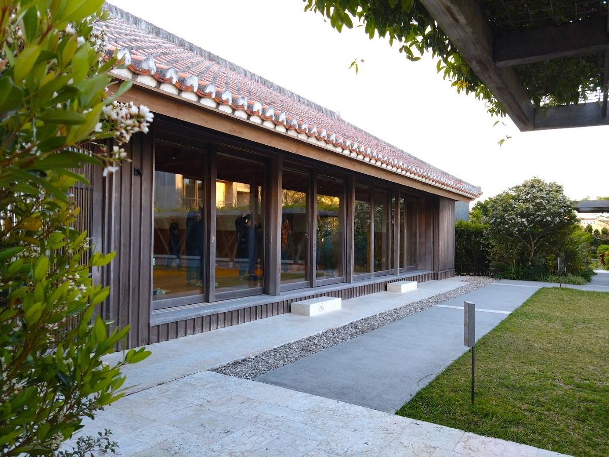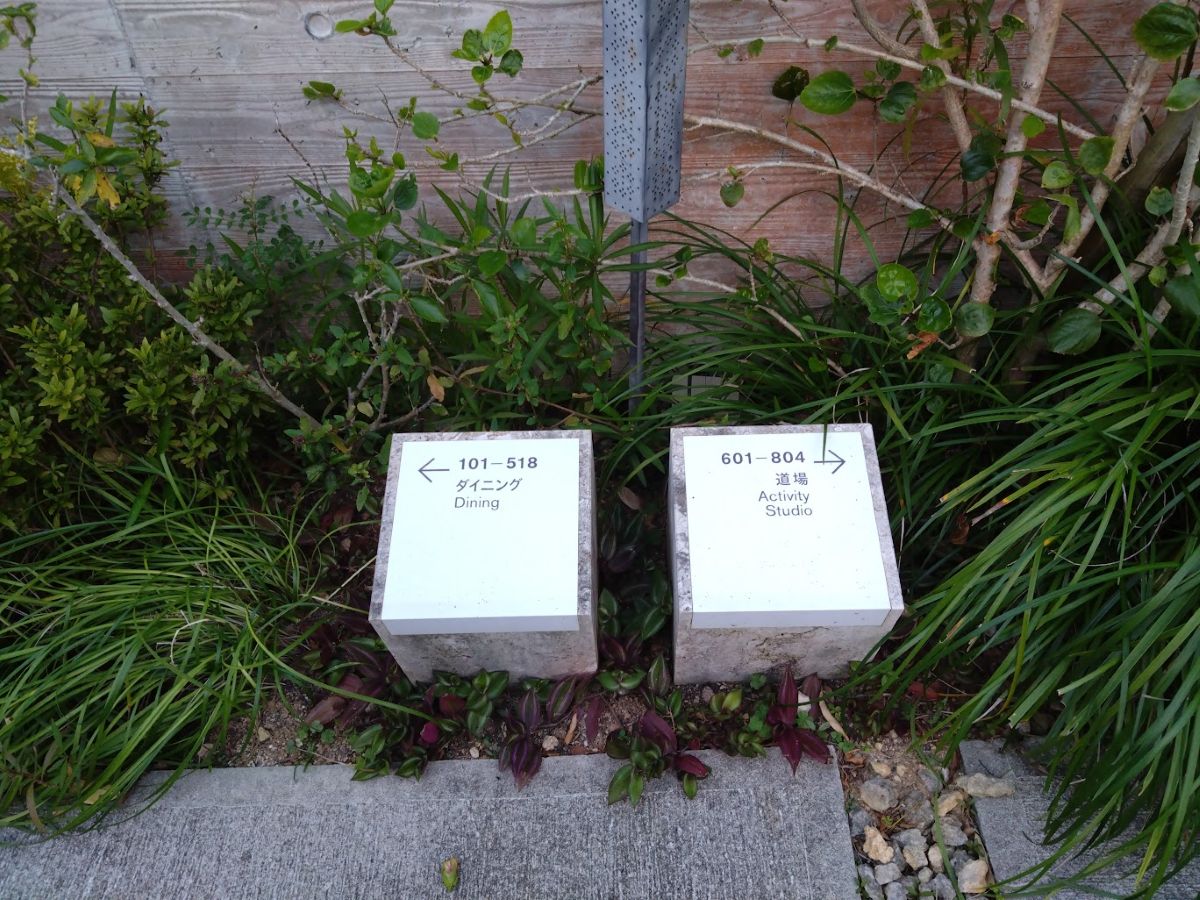 花壇の回廊をいったん抜けると「道場」がある。早朝はヨガ教室かな、たくさんの人が参加していた。午後には沖縄空手の講座もあるようだ。まぁヨガはともかく空手には少し興味があるかな。