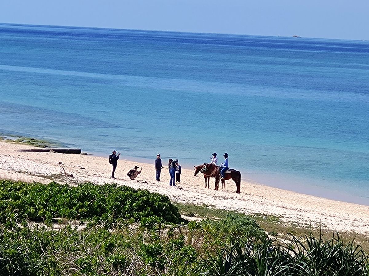 陽射しが強くなってきた。海岸ではサップのスクールが始まったようだ。海岸にそって浅瀬を北の方へと進んでいく。気持ちいいだろうなぁ。そして次に出てきたのは海岸の乗馬散歩かな、さっき見かけたお馬さんは、こんなところで活躍するようだ。まぁこれもビーチの楽しみ方ということだ。