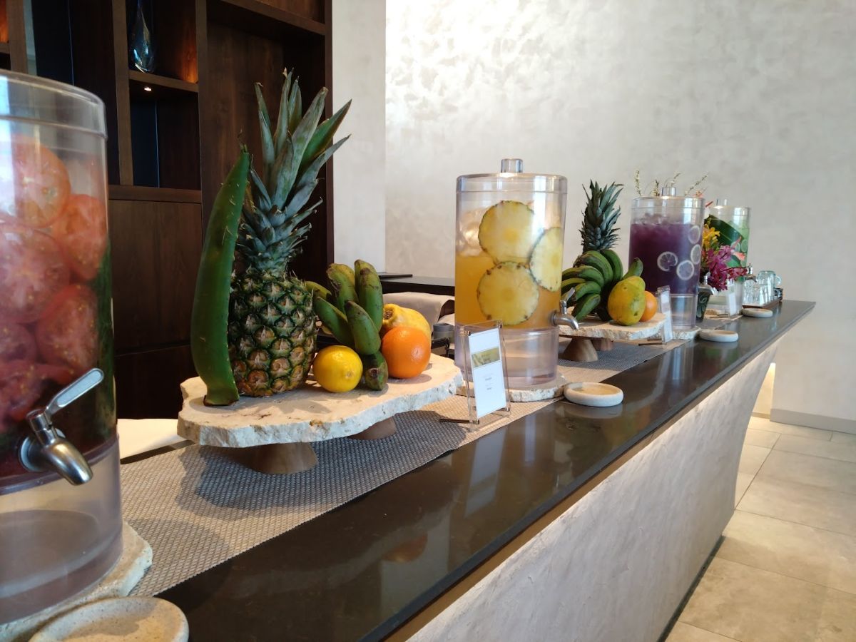 ジュースバーには、ホテルが提案するオリジナルジュース数種類が、オブジェのように並んでいる。どれも3種類ほどの素材で作ったもので、その素材名が表示されている。お気に入りはバナナ+豆乳+黒糖のやつかな、なかなか美味しい。