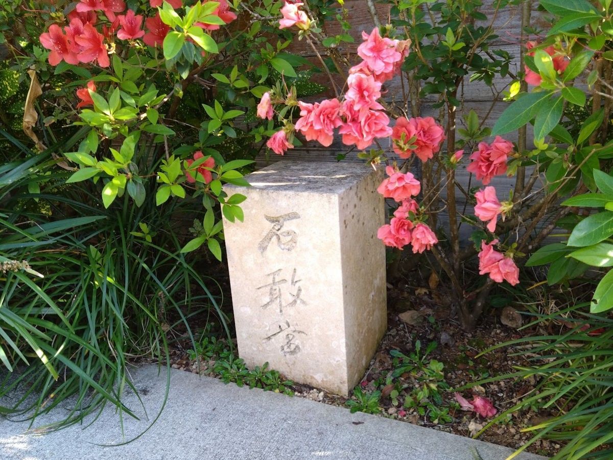 再び回廊の散歩だ。ところどころに表示石があるので、迷っても現在地が分かるようになっている。中には「石敢當」と刻まれた石碑もある。読み方は「いしがんとう」。道の三叉路や丁字路に置くもので、沖縄の魔よけの一種らしい。そういえば屋根の上のシーサーもそんな役割だと思う。沖縄文化の一端が感じられて面白い。