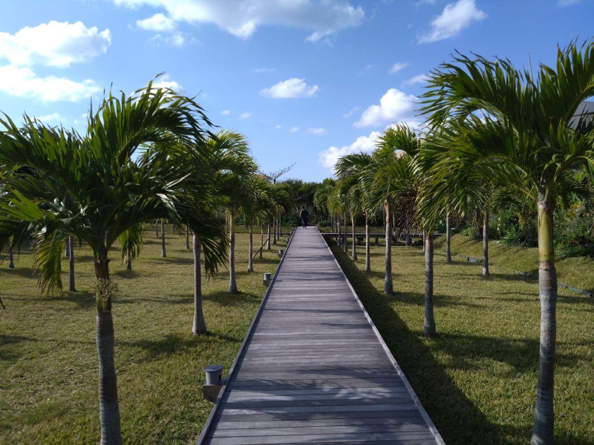 その先には、若い椰子の並木があるのだが、まだ迫力はない。宿の歴史とともに大きく育って、いずれ立派なエリアになっていくんだと思う。
