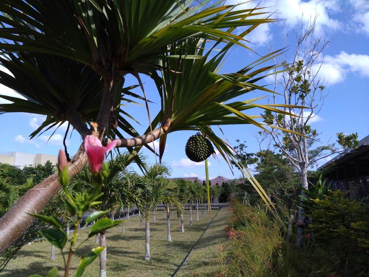 回廊の途中には何人もの庭師さんがいた。木々や庭の手入れをしていて、声を掛けると沖縄弁で応えてくれる。聞き取れないコトバ(たぶん方言)もあるから僕は笑顔を返すだけだ笑。