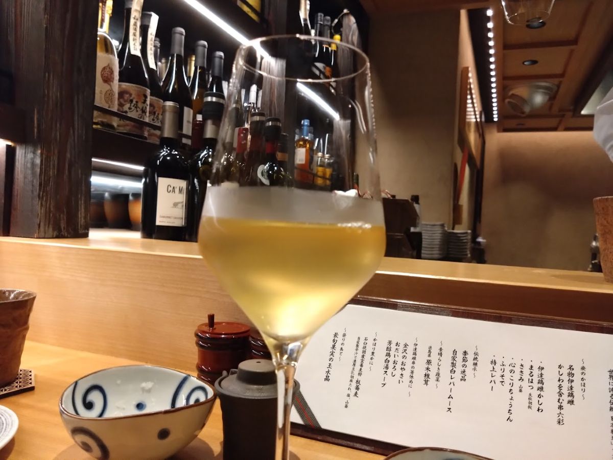 この店は有名なやきとりの一門だが、ここだけは屋号が違っていた。まぁ味が同じなら問題はない笑。自慢のやきとりをコースで出し、これまた自慢のナチュラルワインと一緒に楽しむのがおすすめらしい。まぁワインの品揃えは立派だった。