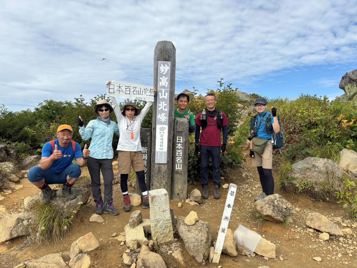 前回の投稿から10日後のこと、最後の1座・妙高山を踏破したS本さんから写真が届いた。つまり日本百名山すべての完全踏破達成のニュースだった。やったね、おめでとう。みんなからのお祝いとねぎらいのコメントが相次いで投稿された。やっぱすごいなぁ。