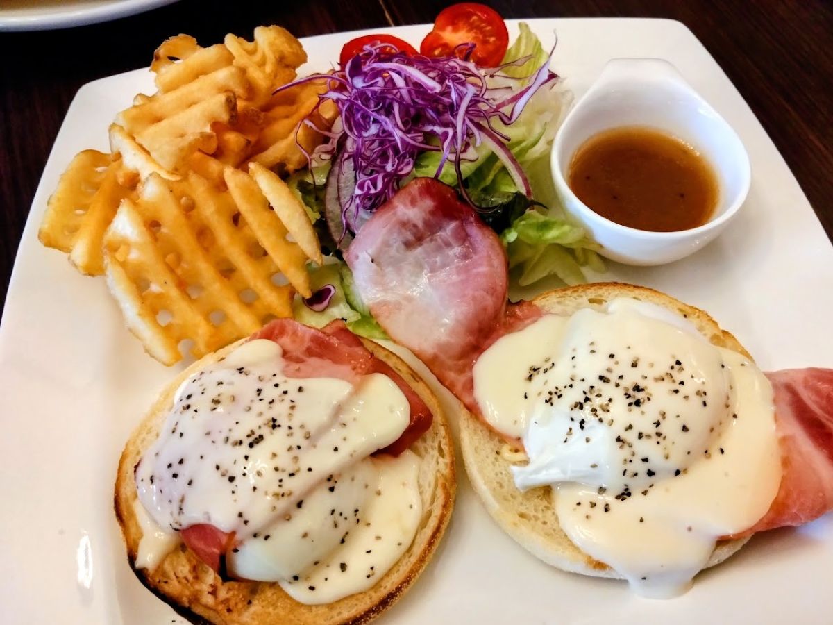ここのやつはホテルのそれと違って、ポテトフライやグリーンサラダと組み合わせたシンプルなやつだった。盛り付けにやや難はあるのだが、ポーチドエッグはちゃんとしていて、とても美味しかった。なかなかやるな~って感じだ。