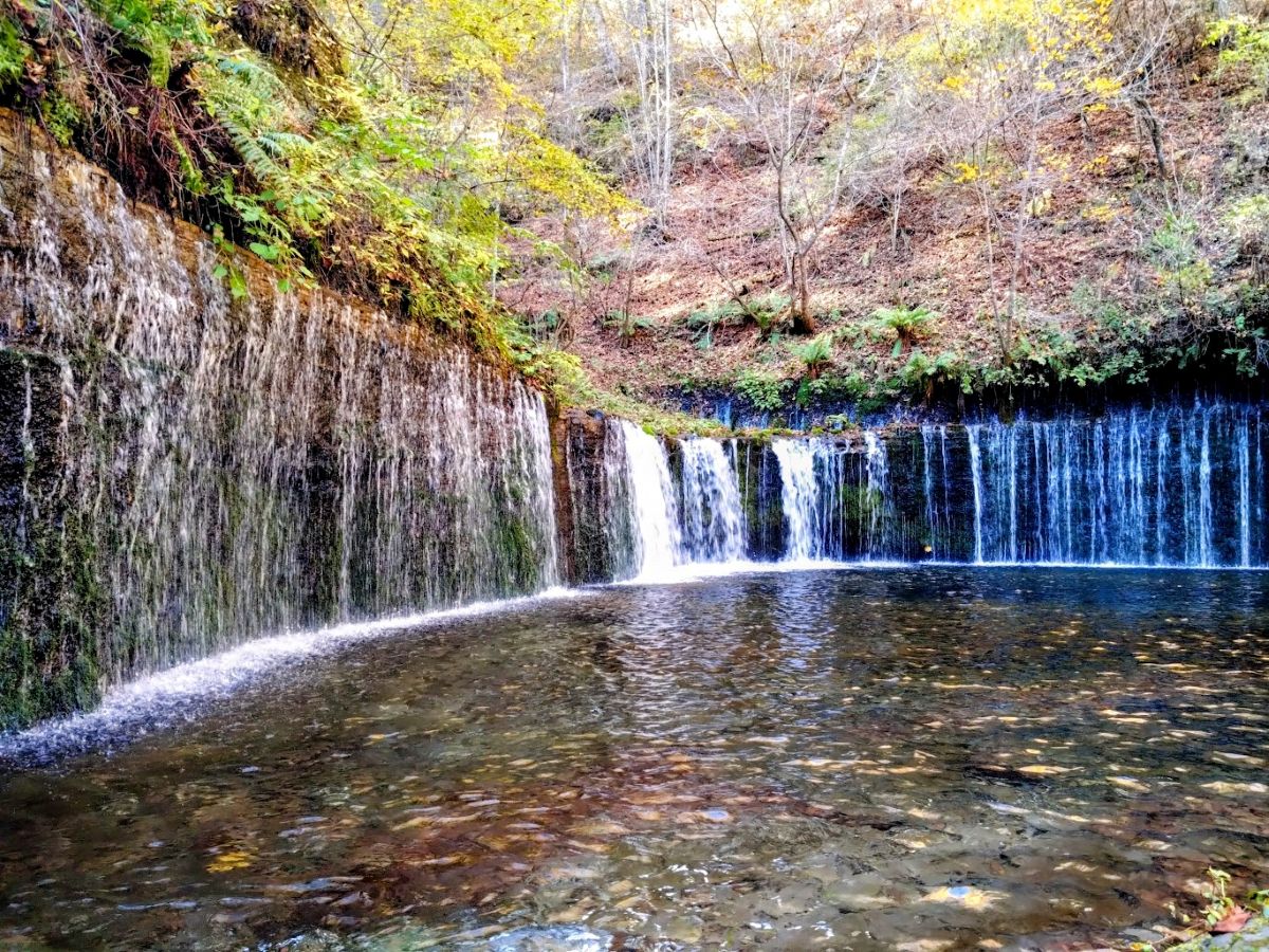 ちなみに白糸の滝周辺の紅葉はまだ色付き始めって感じだった。もちろんあのおばさんスタッフの言葉を疑うわけではない笑、陽も降りてきたからそろそろ中軽井沢へ向かおう。