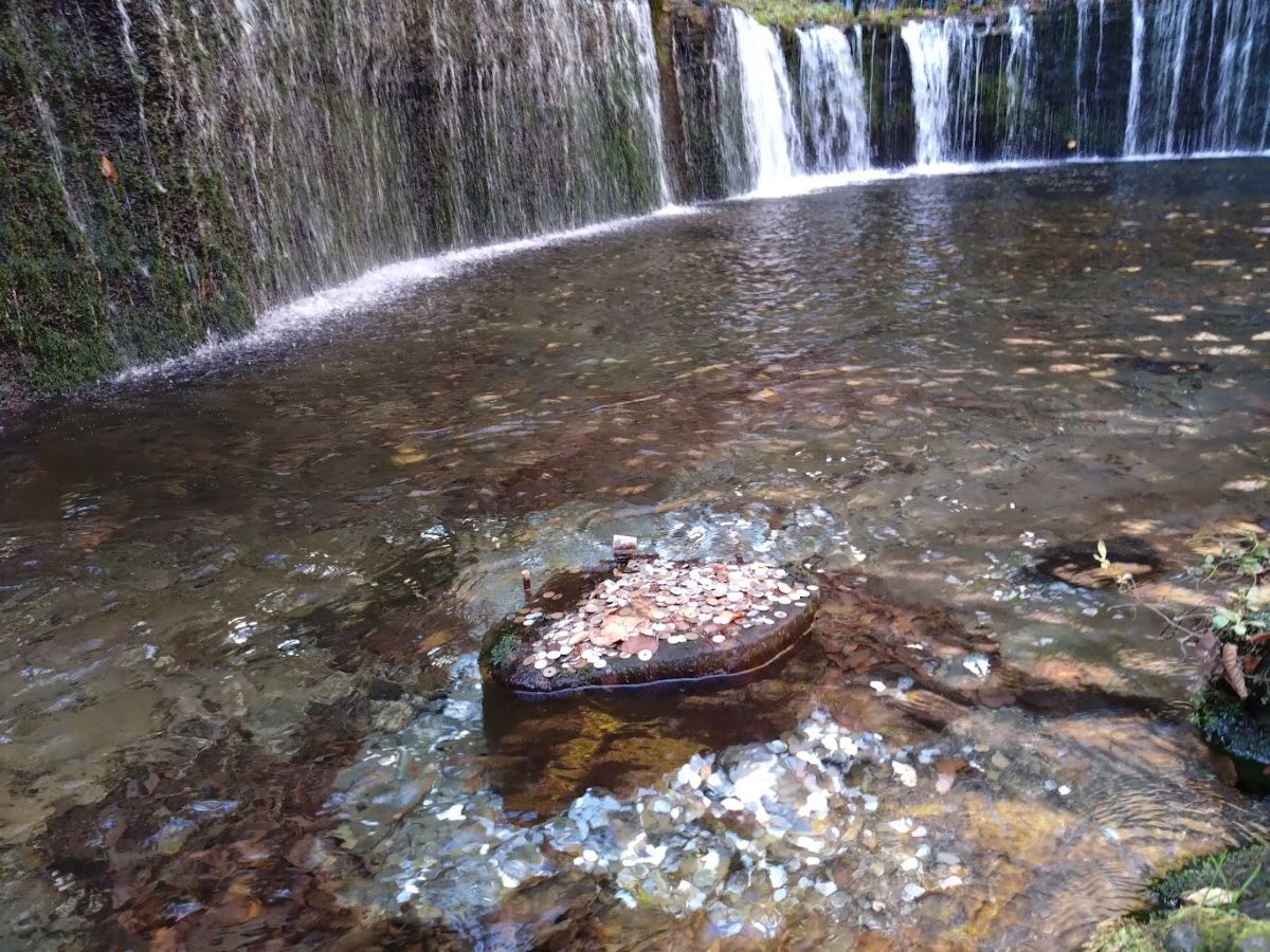相変わらず幅70mの滝は美しかった。迫力ではなく静けさの方かな。ふと気付くと(いつの間にか)滝つぼの手前の小さな岩に投げ銭(コイン)が溜まっていた。パワースポットって呼ばれてるから勘違いも起こるのかなぁ。