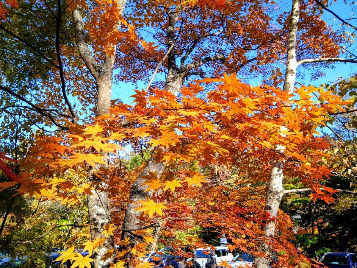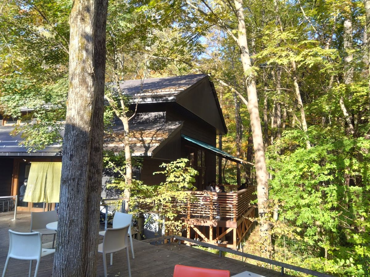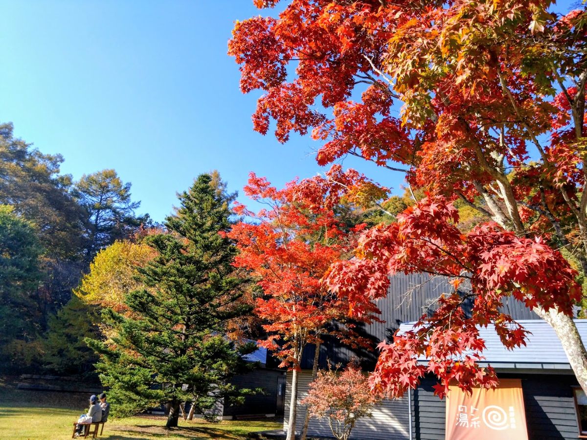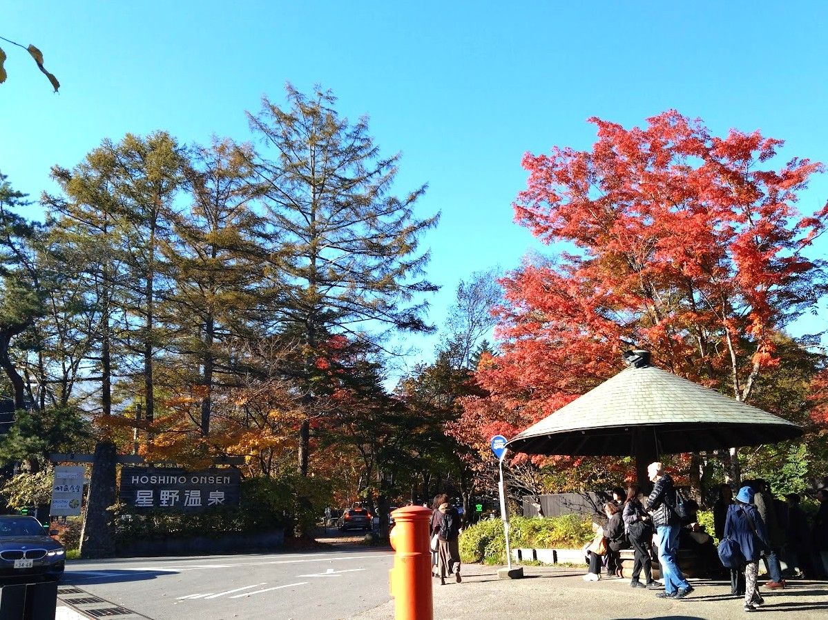 なかでも、ここ星野温泉は、トンボの湯という温浴施設やおしゃれな食堂、カフェなどが配置されていて、季節のイベントなども開催される大人気スポットになっている。さっそく紅葉探しの散策をはじめた。