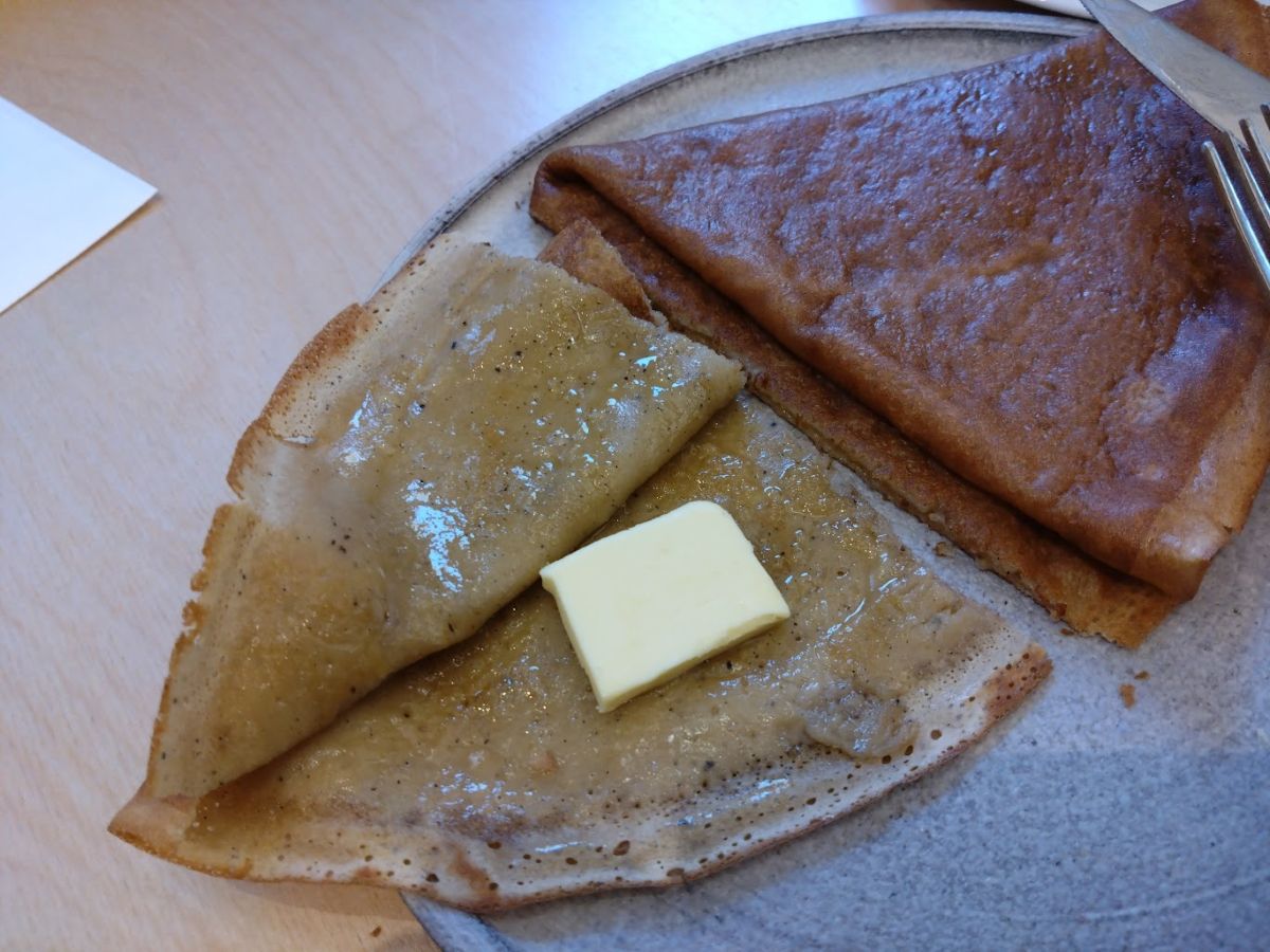このクレープはとてもシンプルで美味しかった。焼きたてのクレープの横に冷たいバターが添えられているのだが、塗るのではなくクレープに挟んで口に運ぶ、そんな食べ方をおすすめしていた。畳まれたクレープをめくって中を確認したりしながら、不思議なおいしさの秘密を探したりした笑。