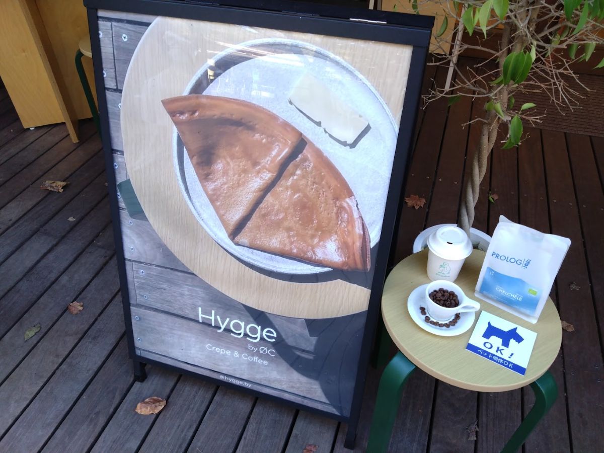 で、少し前から気になっていたカフェに入ってみることにした。ここはクレープ&カフェ、一番人気はシュガーバター・クレープらしい。店名のヒュッゲからすると北欧(デンマークかな)の生活哲学っぽい感じがコンセプトなのかな。