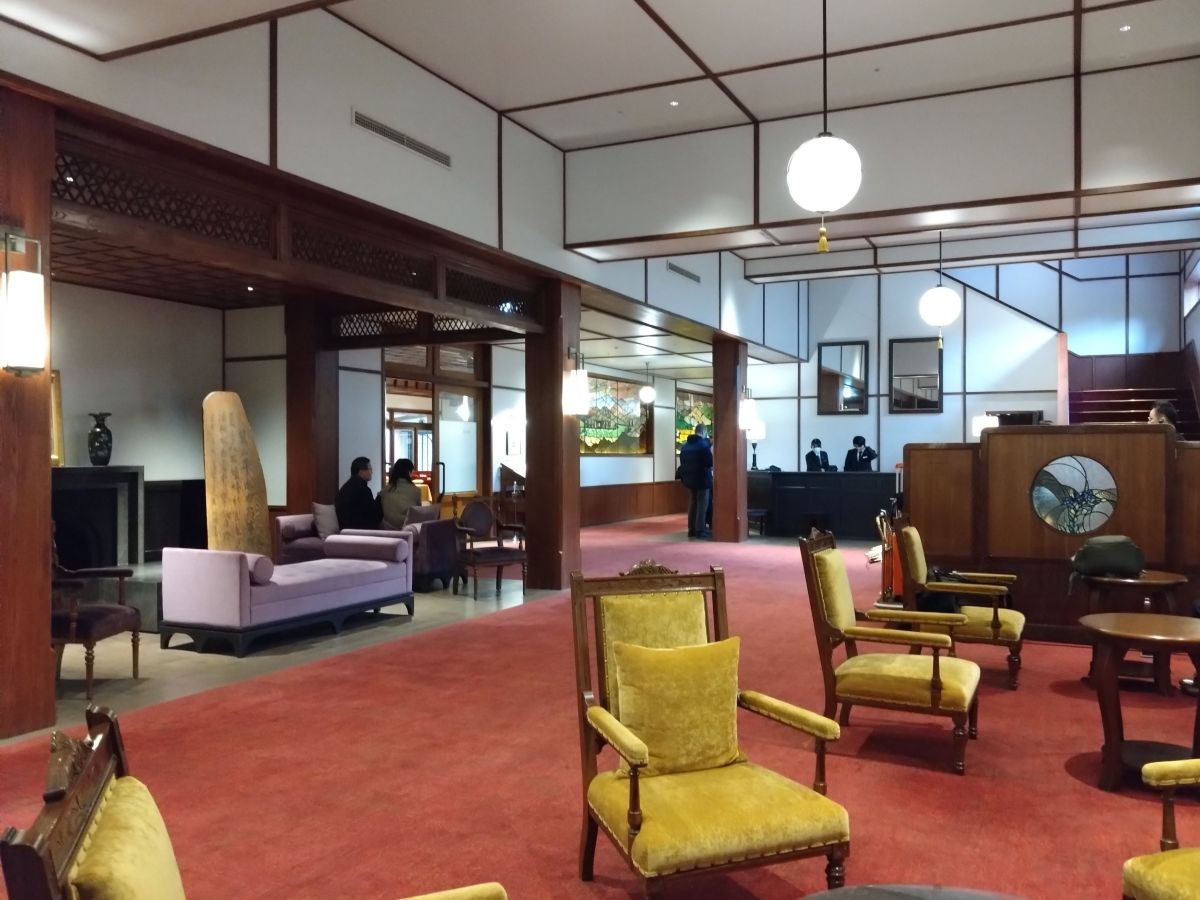 静かなエントランスを抜けると、クラシックなロビーだ。その右手にレセプション(フロント)、そして左にカフェやバーがあった。廊下の壁にはホテルの歴史がわかる展示物が並んでいたりする。大昔の宿泊者名簿もあって、三島由紀夫をはじめとした意外な人物のサインを見つけたりできる。