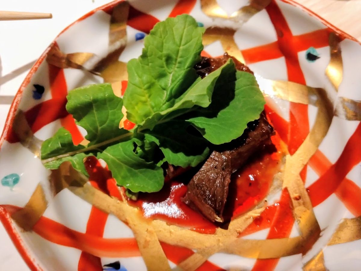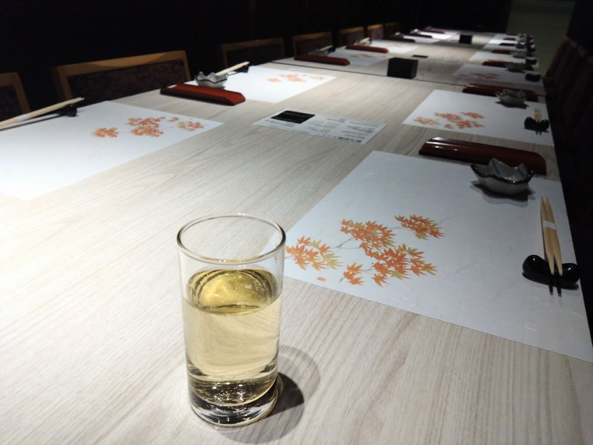 今日は、店側のアイデアでウエルカムドリンク(なぜかスパークリングと地酒の二択)が用意されていて、僕はスパークリングを片手にテーブルへ進みます。照明がやや暗いこともあって、とても落ち着いた雰囲気の和室でした。