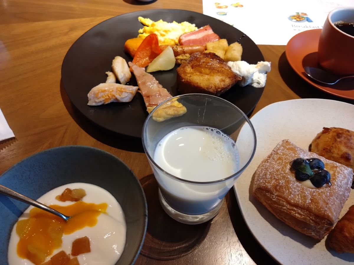 ということで、急ぎ足で向かった朝のダイニングは、夜とは違って活況づいていた。大きな吹き抜けには朝の陽ざしが入ってきて、とてもいい感じだった。
