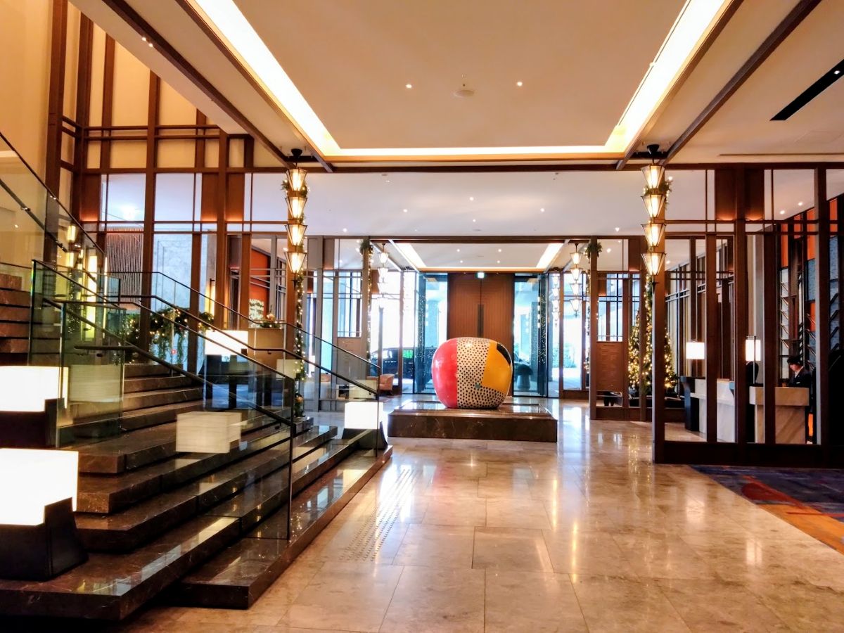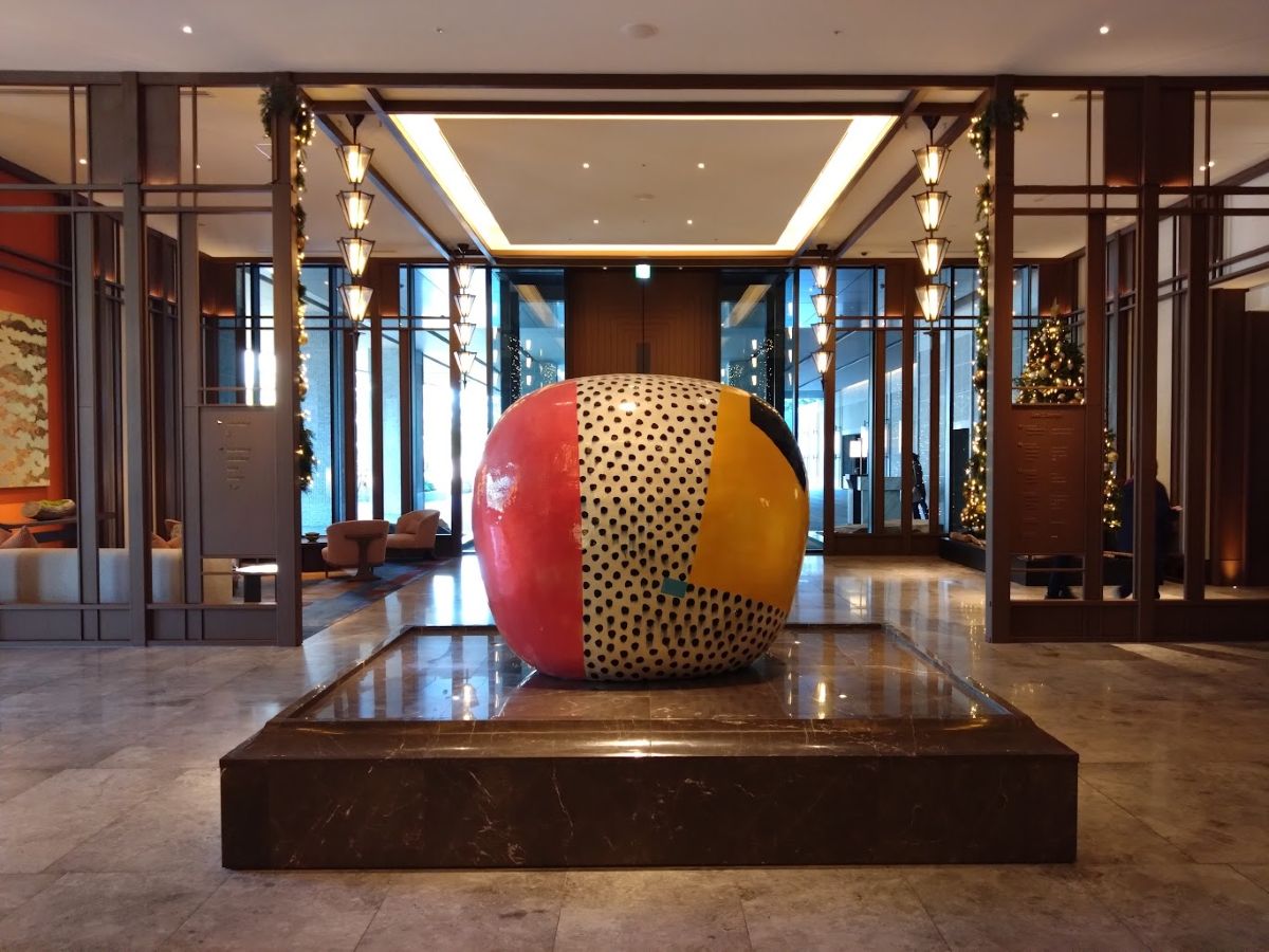 ホテルの1階ロビーはとても広くて豪華だった。壁の絵画や中央のオブジェは(僕には意味が分からないが)その存在感は抜群だ笑。。