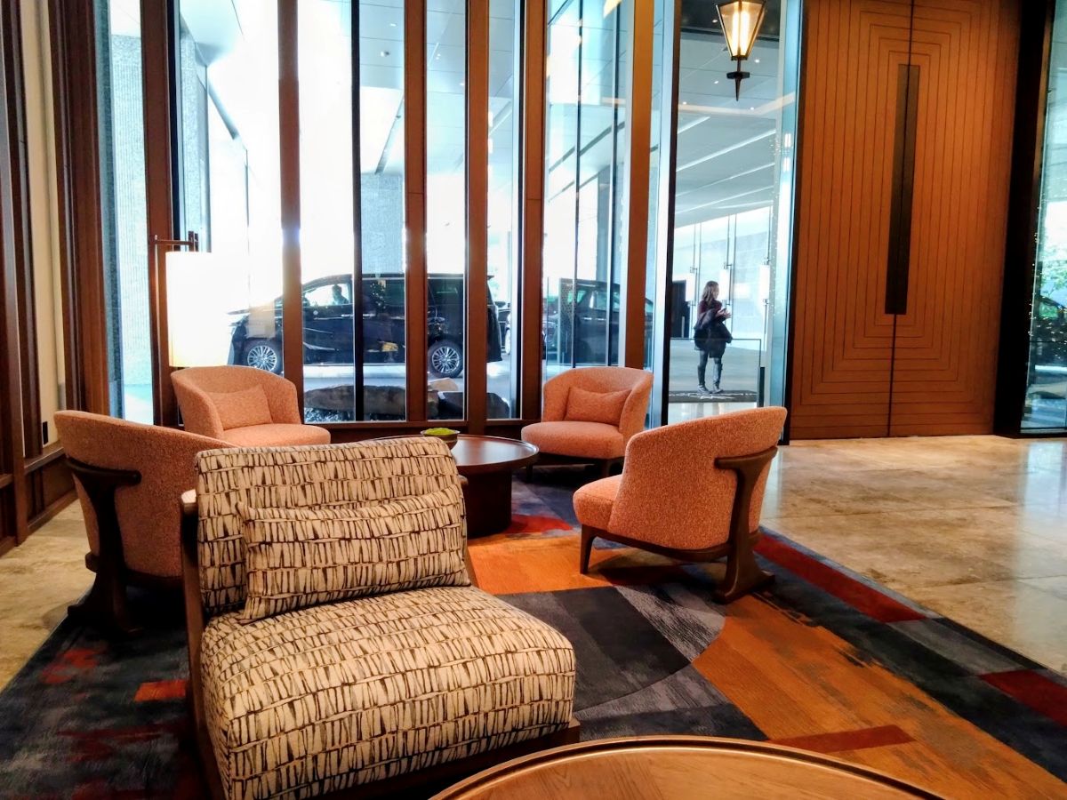 なんとなく違和感があるのは、僕たちが車寄せ(つまりホテル正面側)からではなく、反対の商業施設側から入ってきたからだ。まるで「裏口」から歩いて入ってきた感じってことだ。やっぱりこのタイプのホテルは正面に車で乗り付けるほうが断然カッコいい笑。